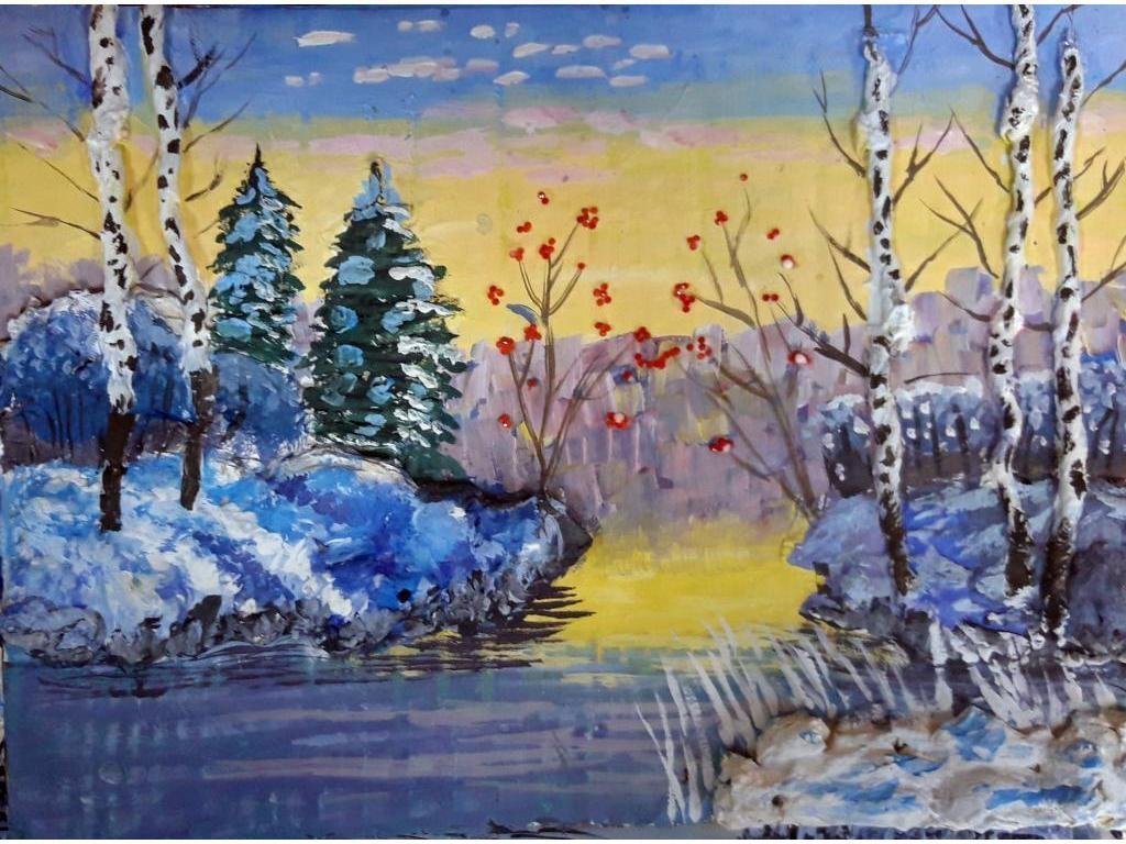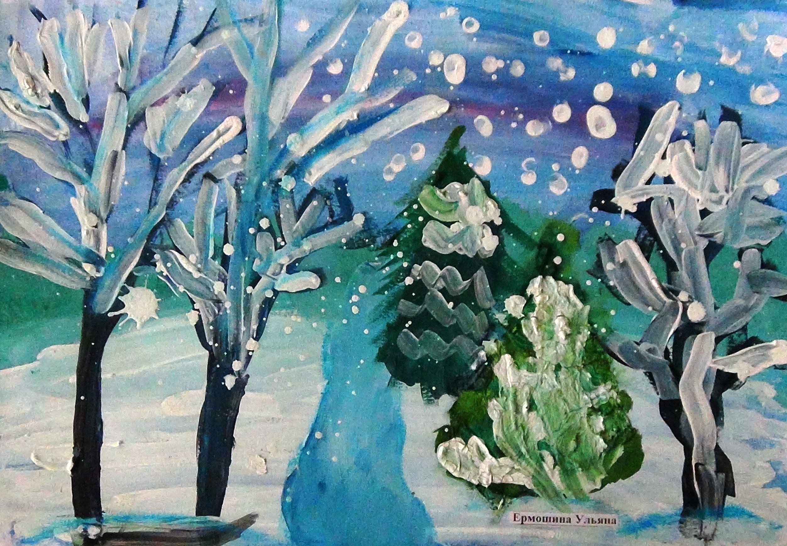 Рисунок зима красками