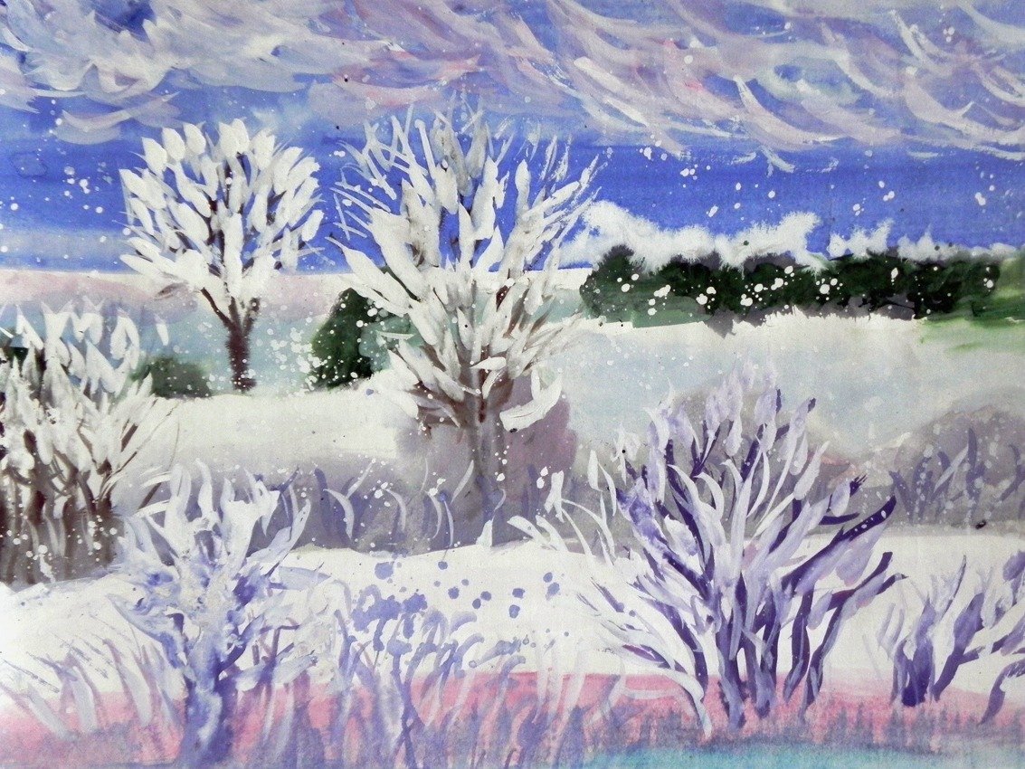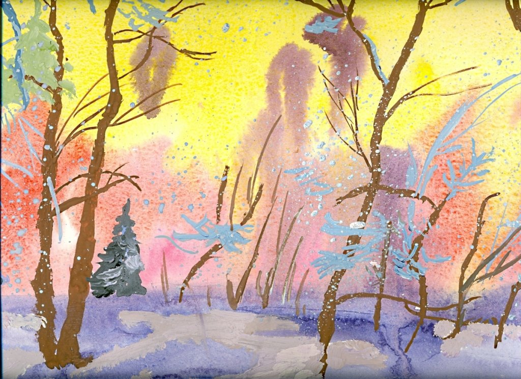 Правополушарная живопись зима гуашь