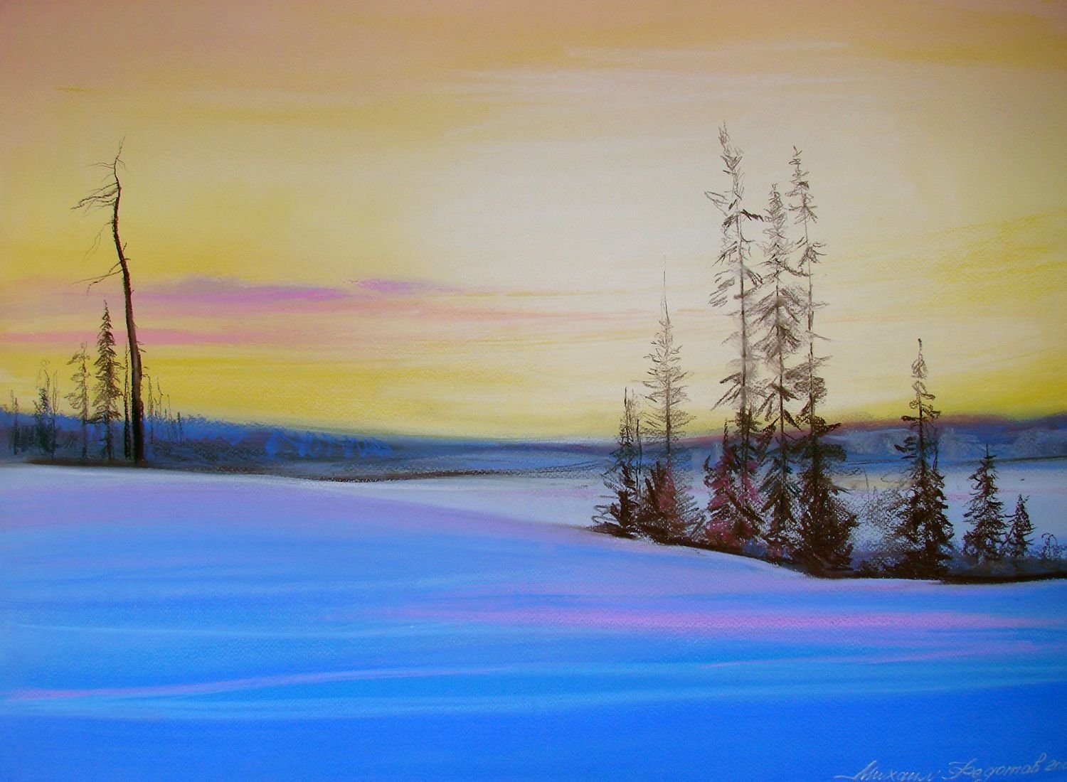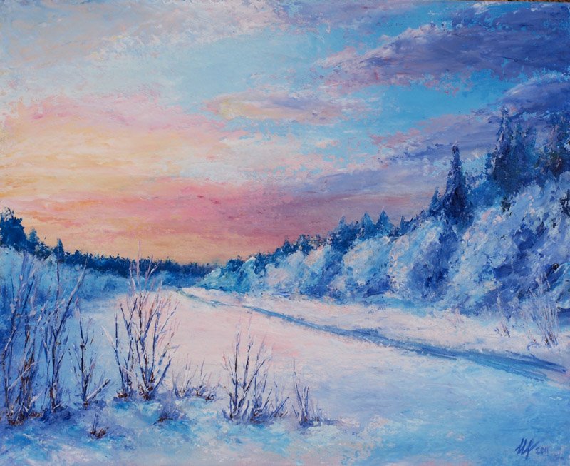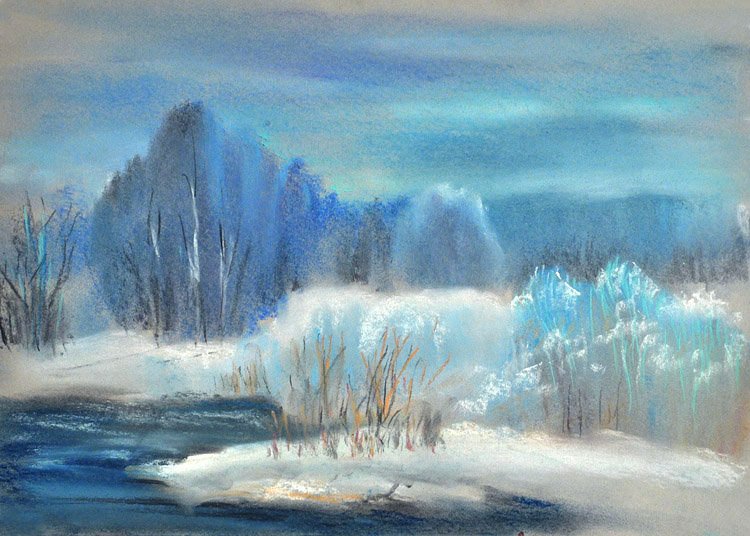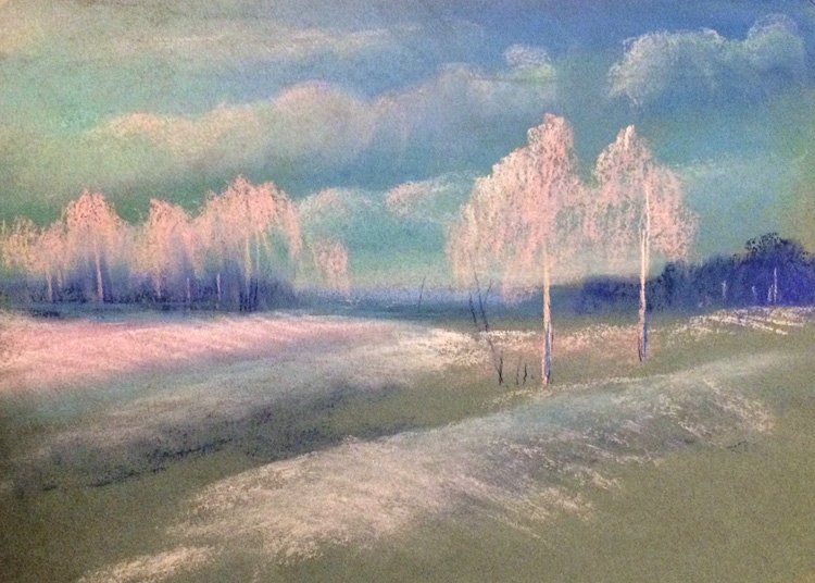 Великолепие зимнего пейзажа запечатленное на холсте с помощью пастельных оттенков не оставляет равнодушными никого. Чистый белый снег, искрящийся под солнечными лучами, прекрасно сочетается с нежными голубыми и розовыми тонами заката. Пастельной техникой созданные картины оживляются перед глазами зрителя, воссоздавая атмосферу умиротворения и спокойствия зимнего времени года. Мягкий, приглушенный колорит пастелей подчеркивает магию и загадочность зимнего пейзажа, придавая ему особую гармонию и изысканность. Картины, нарисованные пастелью, станут прекрасным украшением интерьера, добавляя в него штрихи изящества и элегантности.
