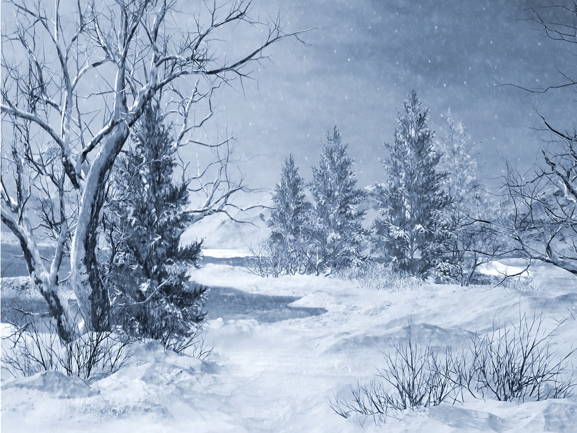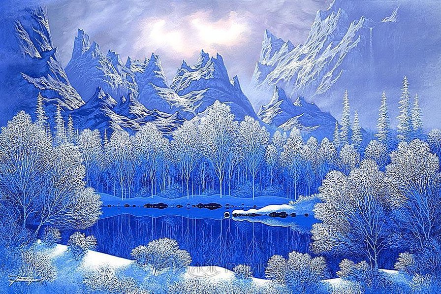 Зимний пейзаж в голубых тонах