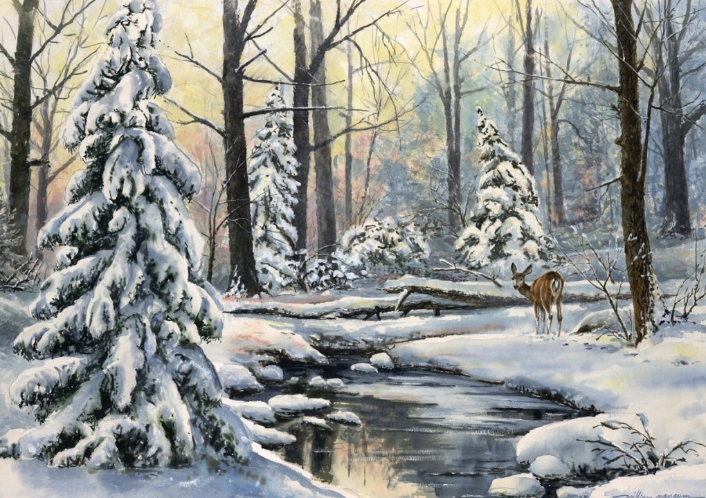 Мастер класс зимний пейзаж гуашью