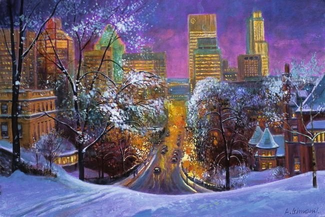 Александр Стародубов зимний город картины