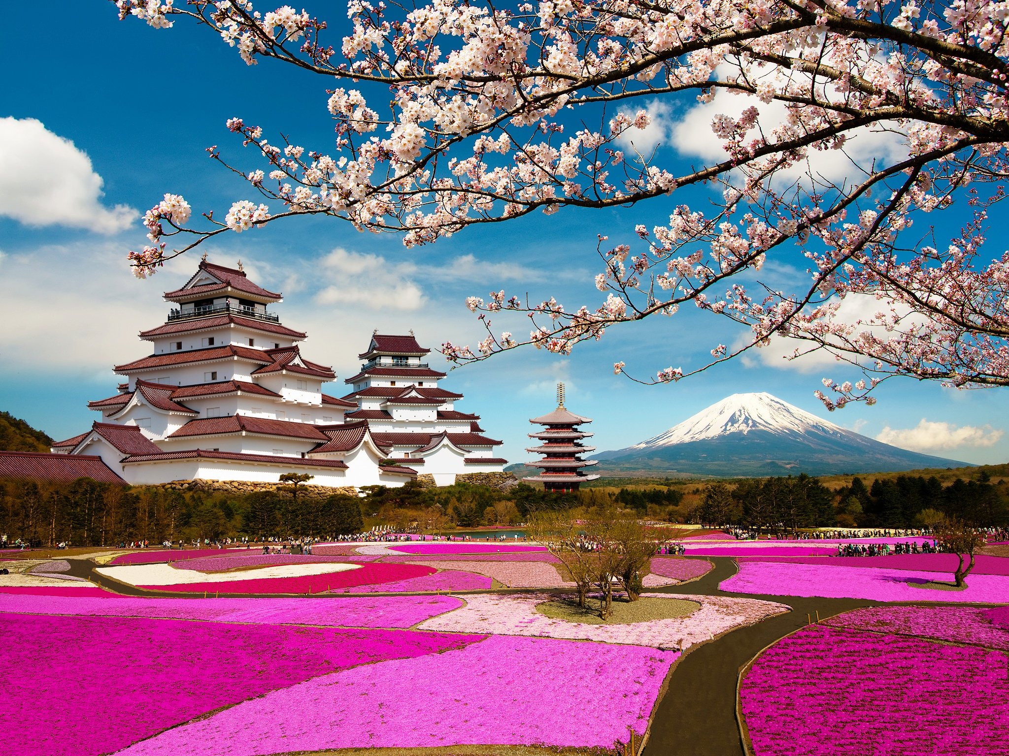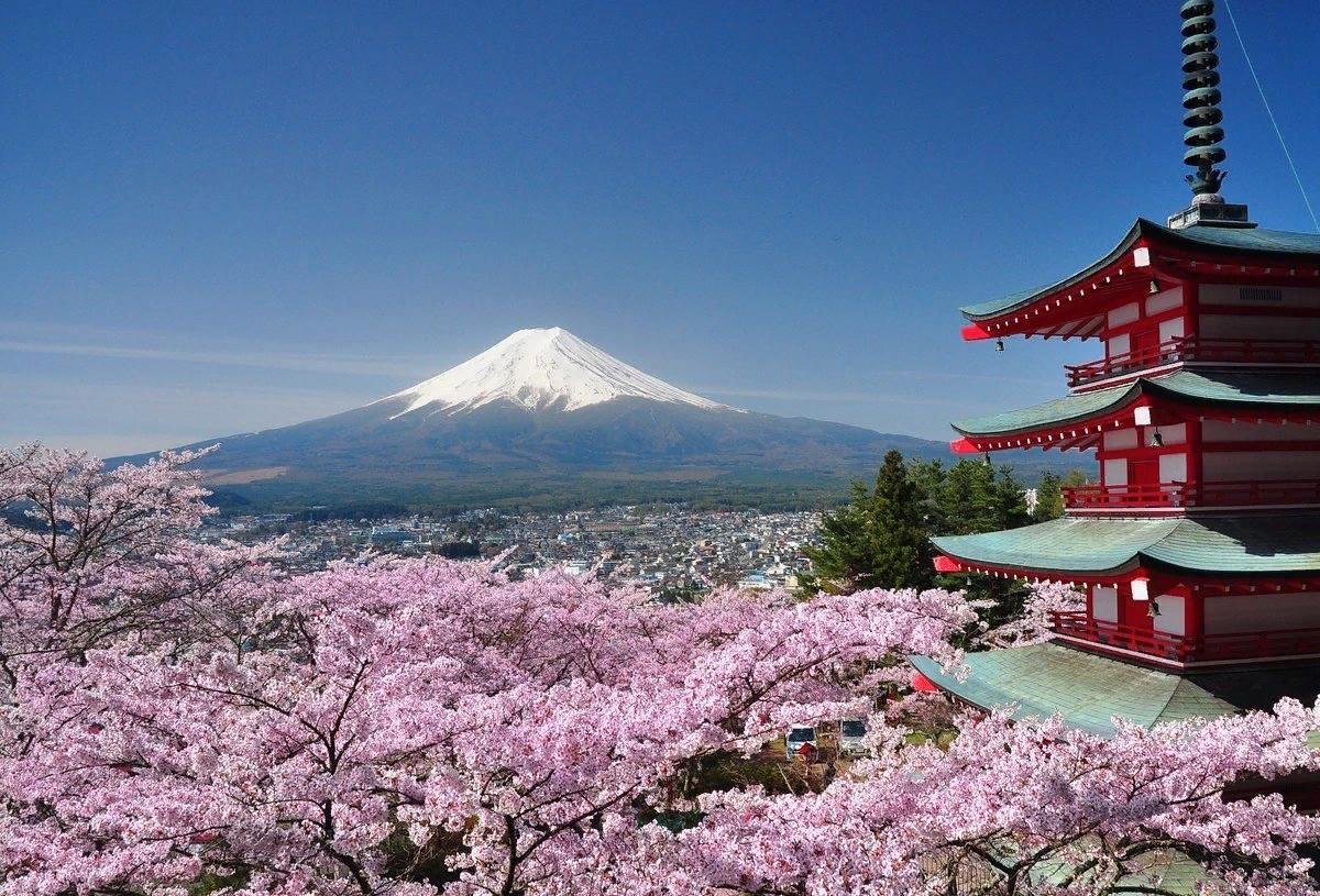 Гора Фудзияма и храм в Сакуре