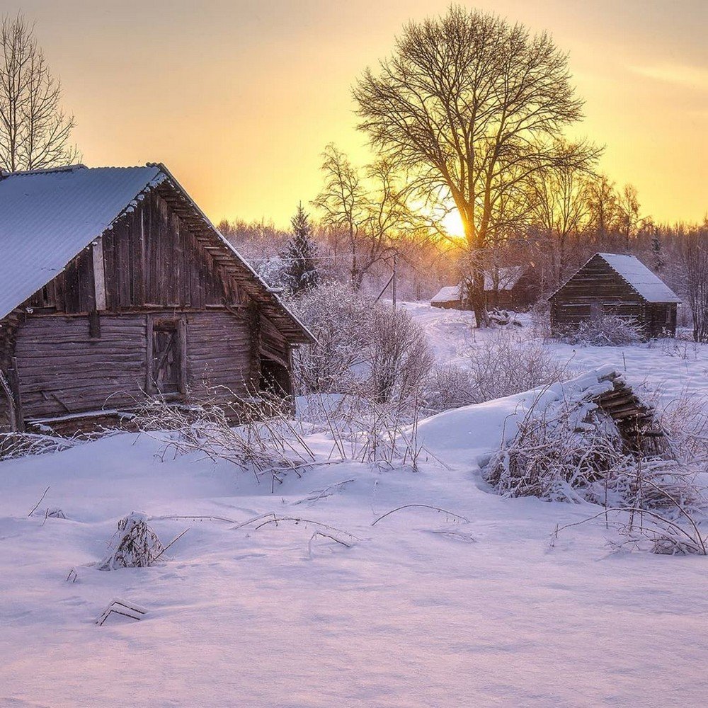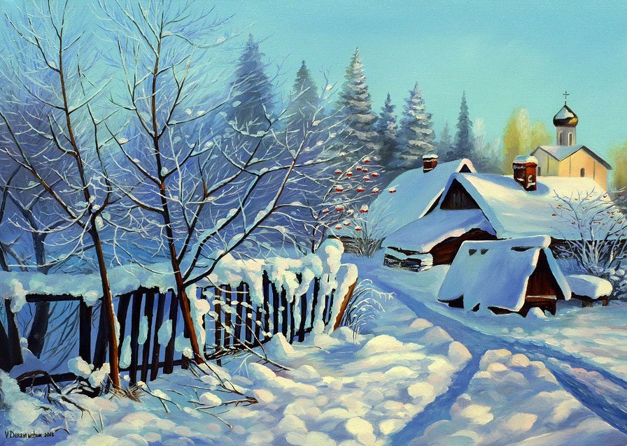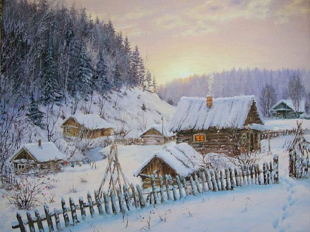Зимние Деревенские пейзажи Воля художник