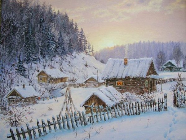 Живопись маслом зима в деревне