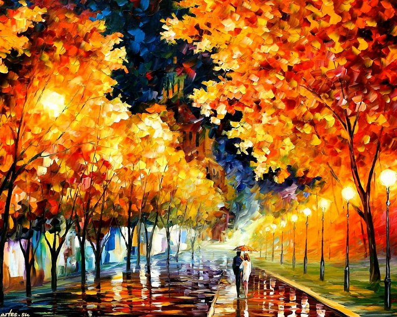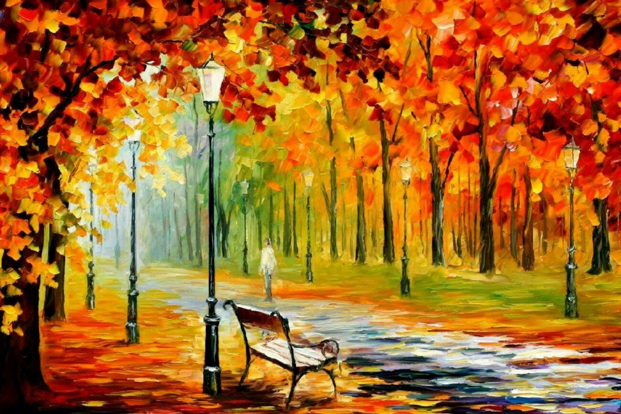 Леонид Афремов картины осень аллея