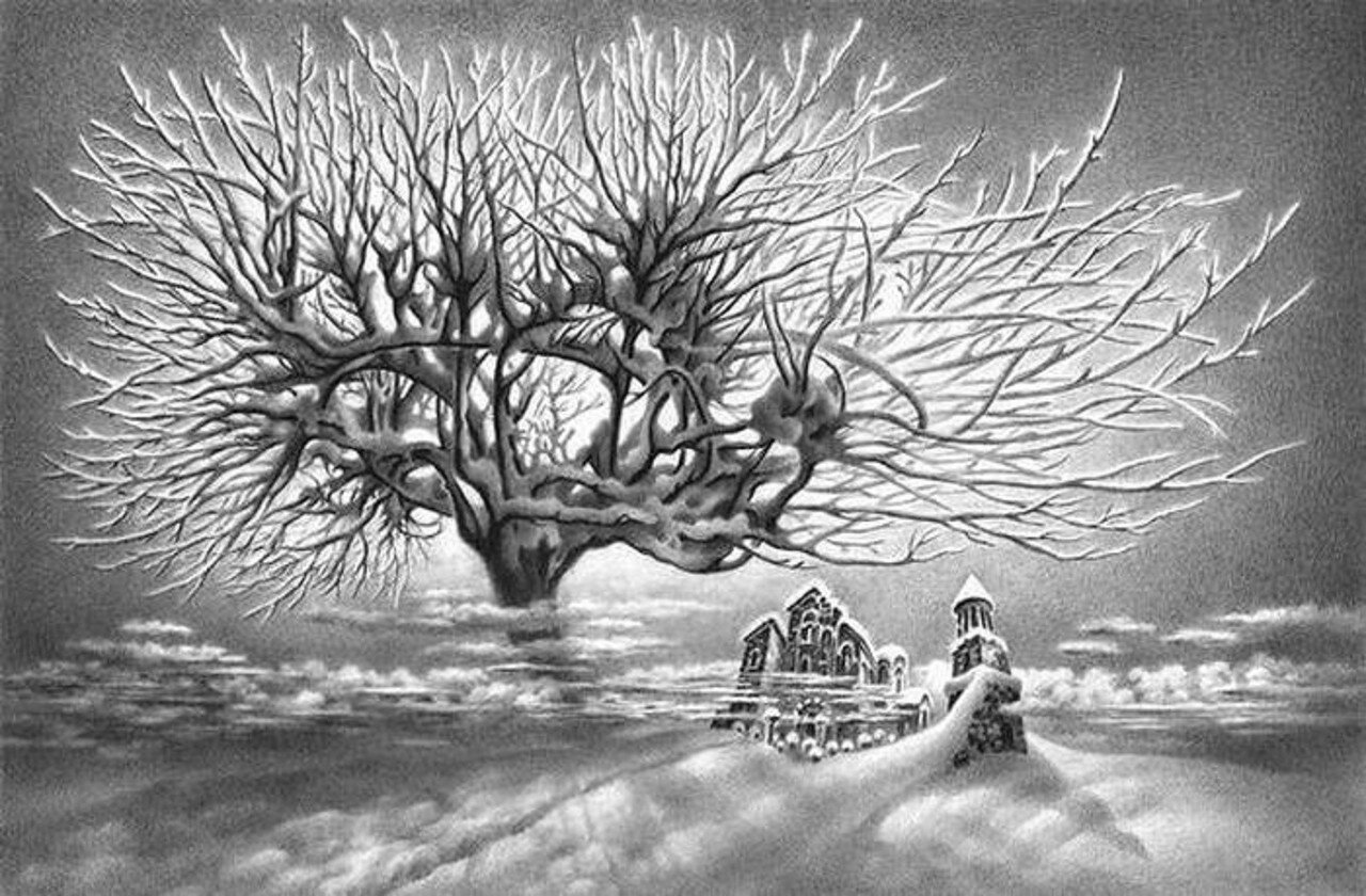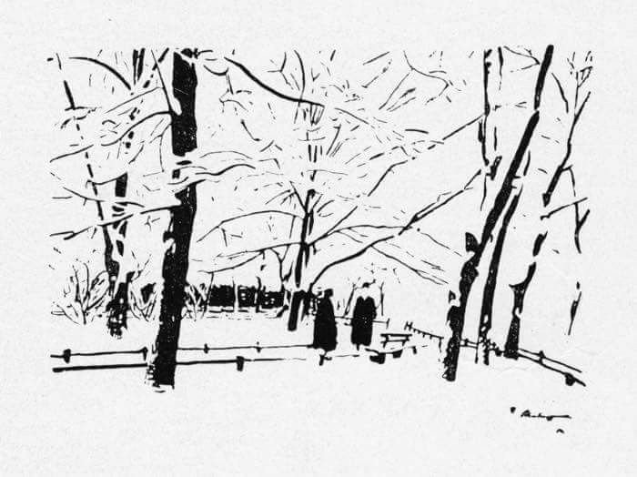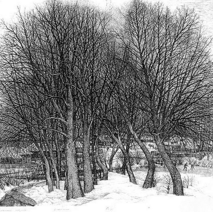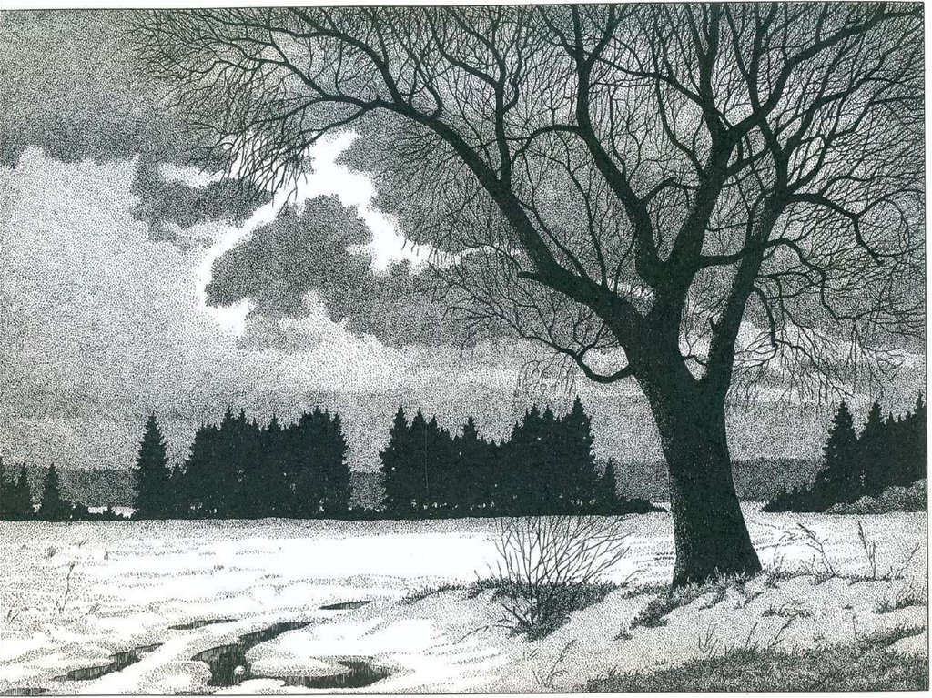 Зимний пейзаж в графике