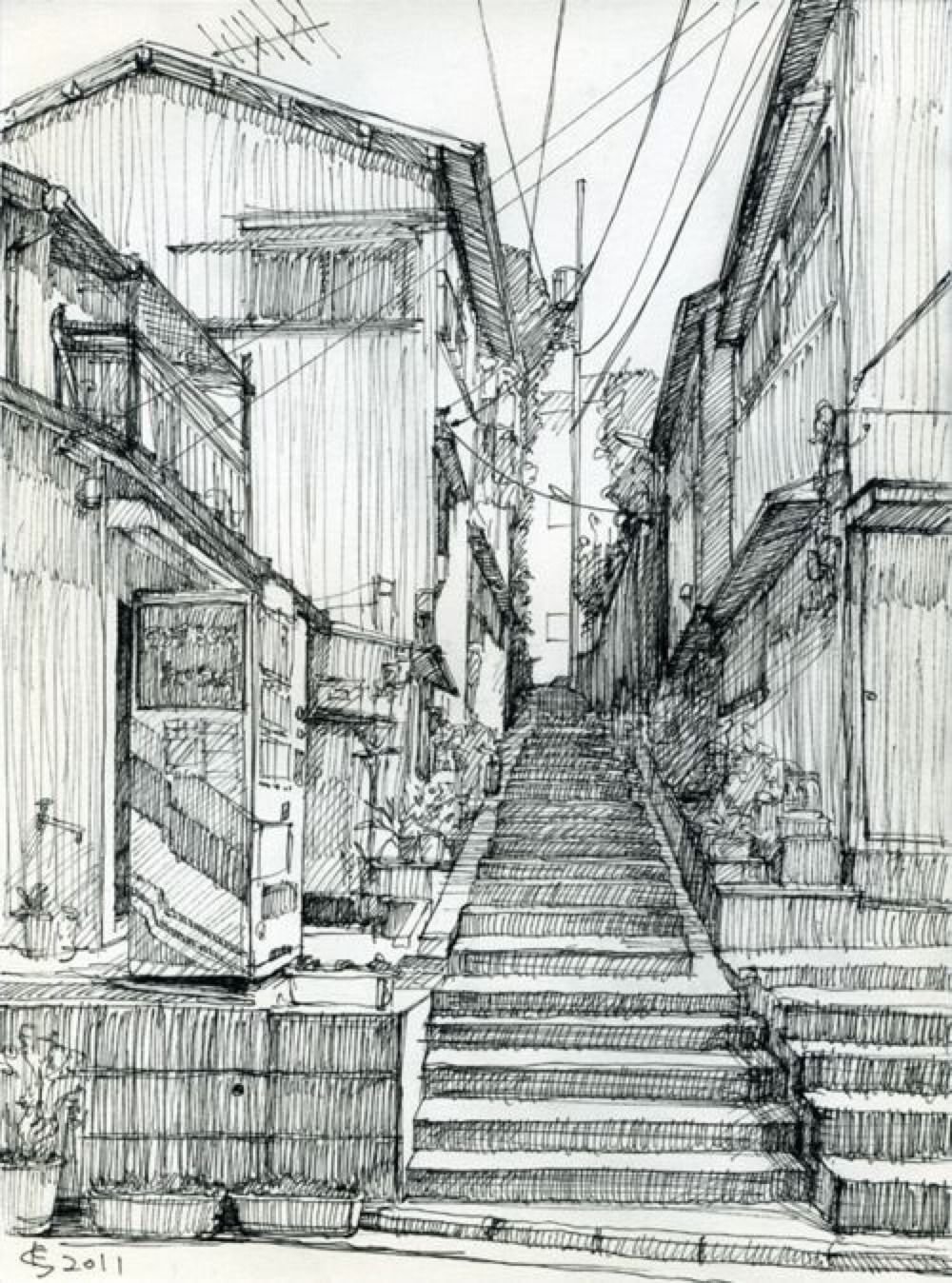 Зарисовка города линейная перспектива