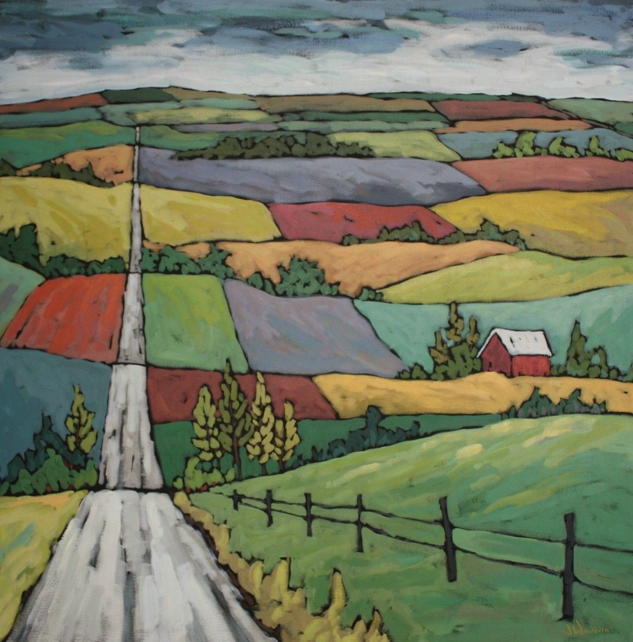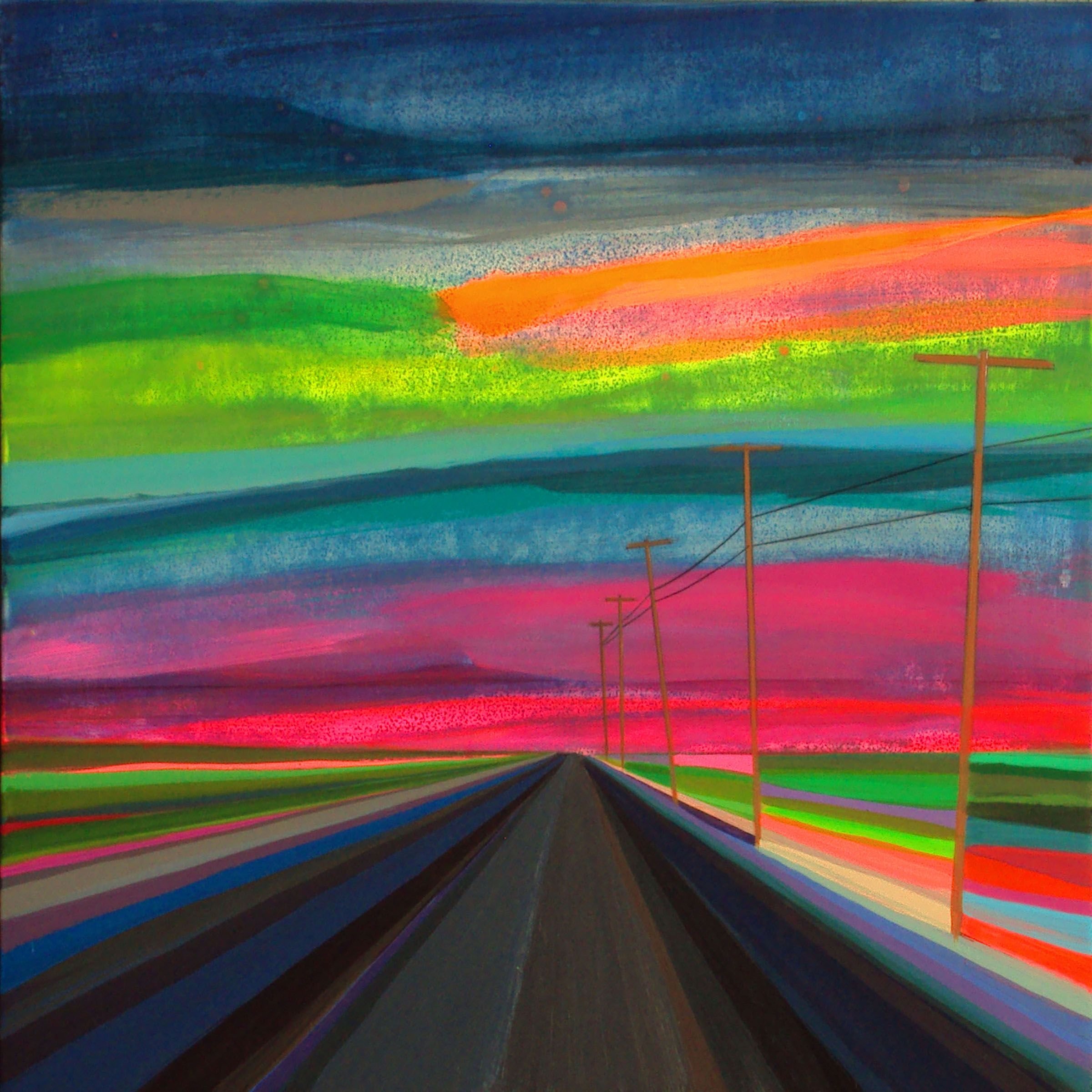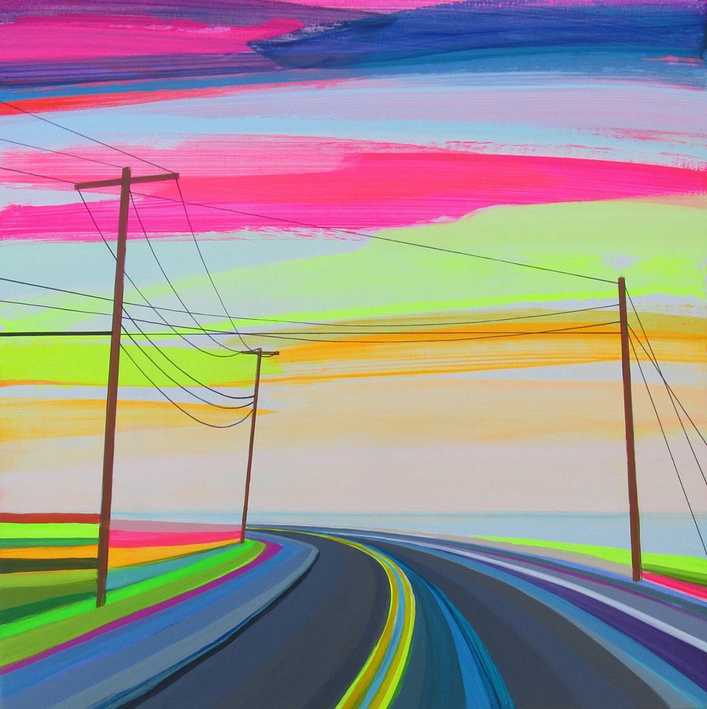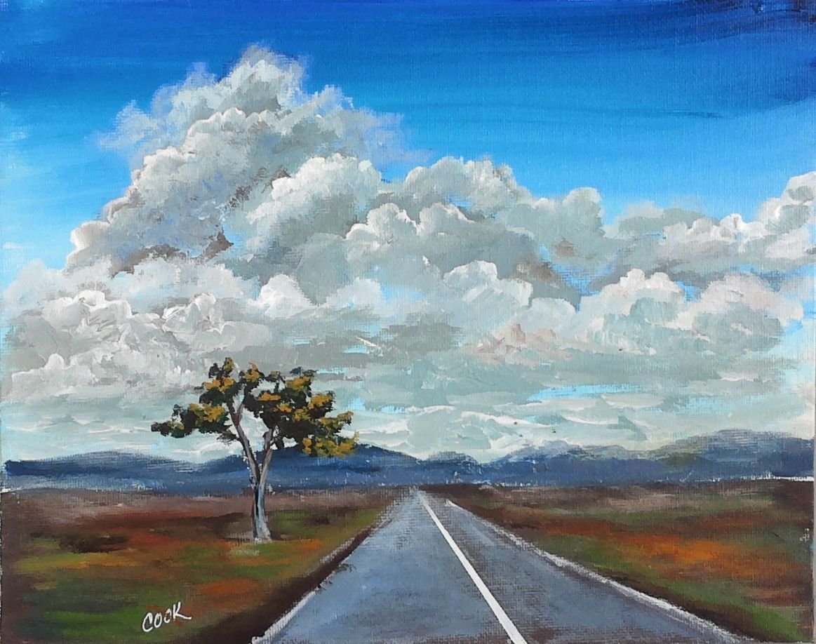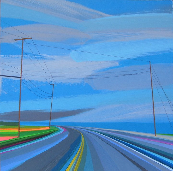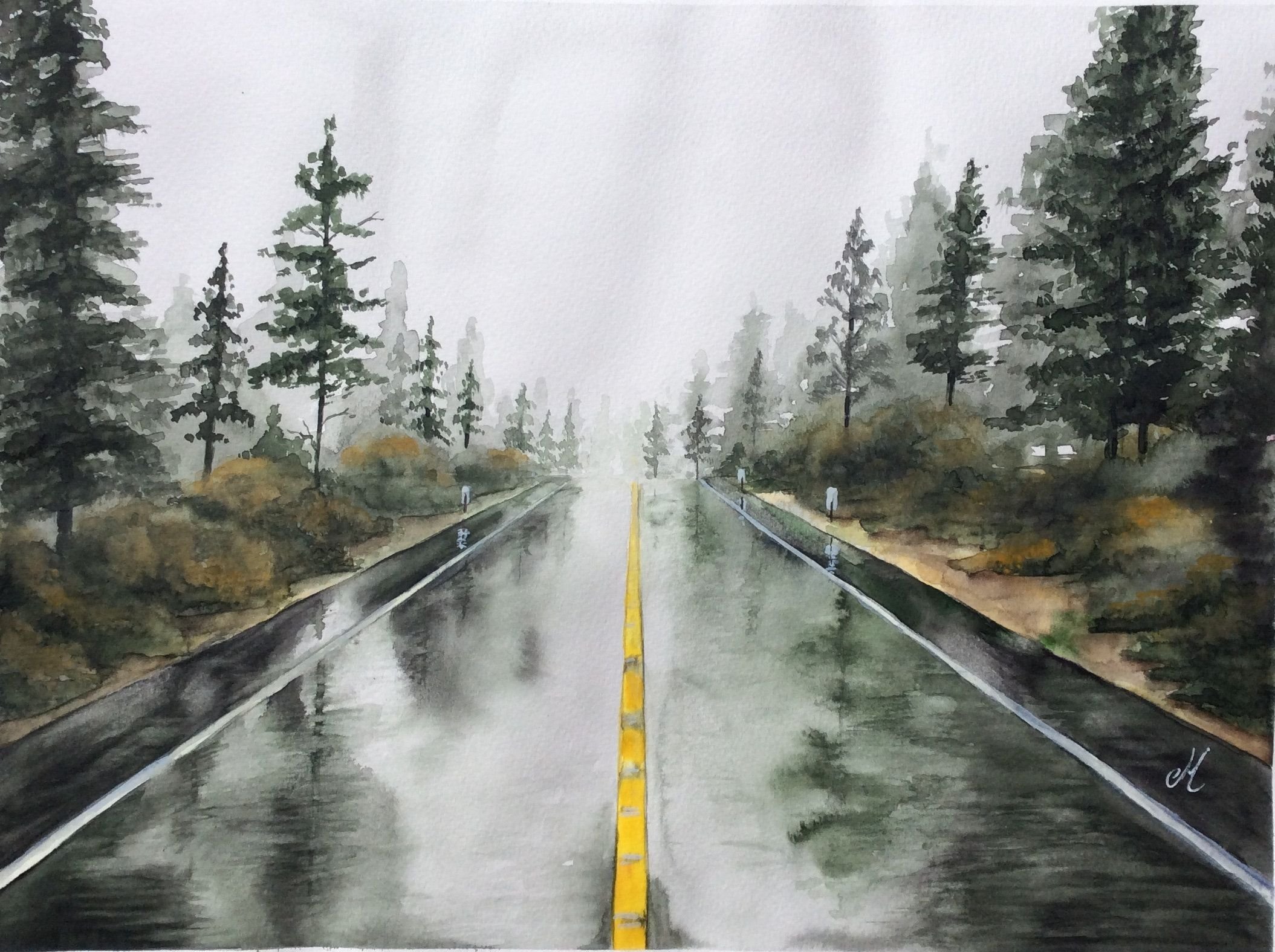 Пейзаж с дорогой акварель