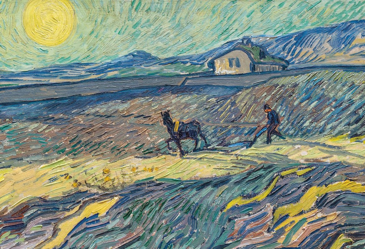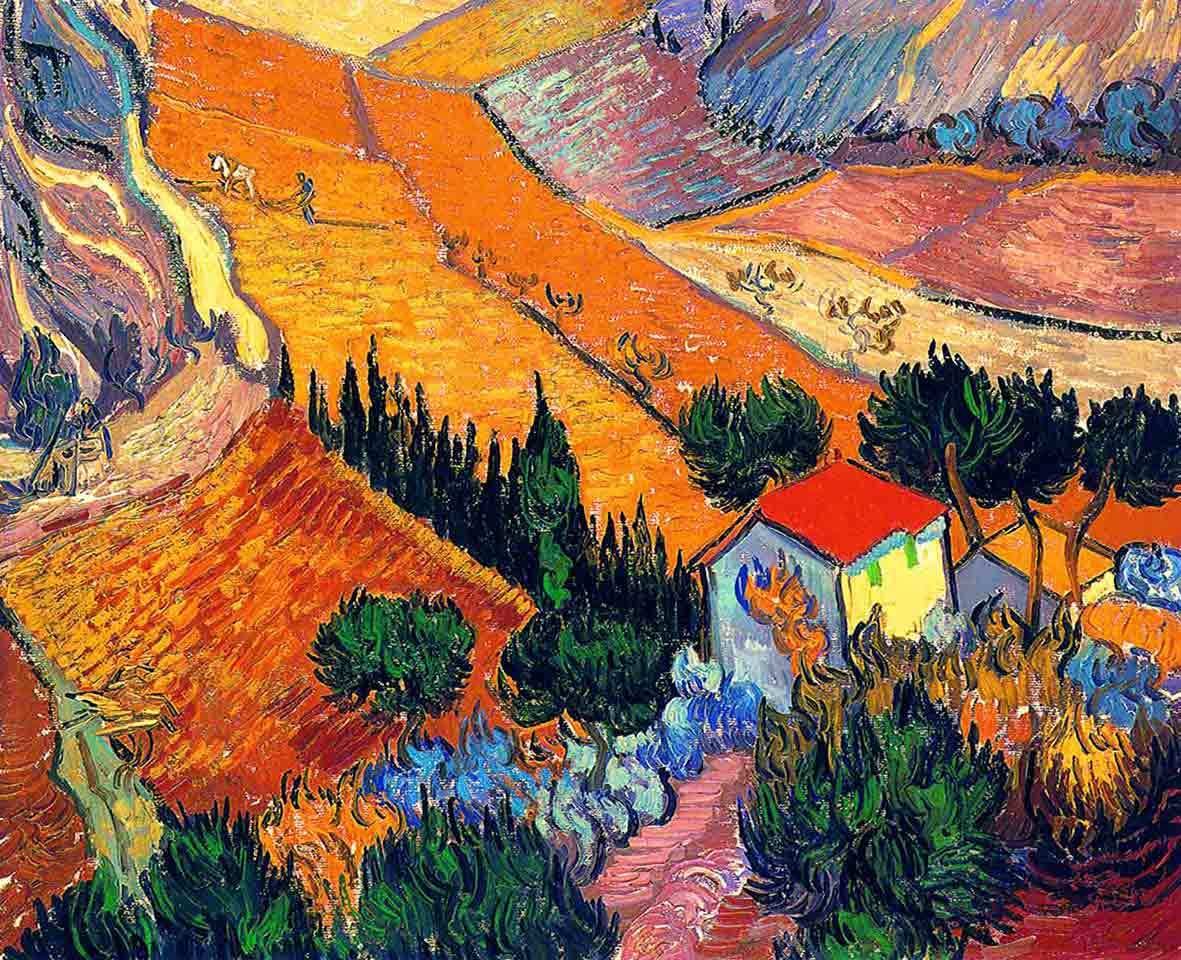 Винсент Ван Гог «пейзаж с домом и пахарем». 1889