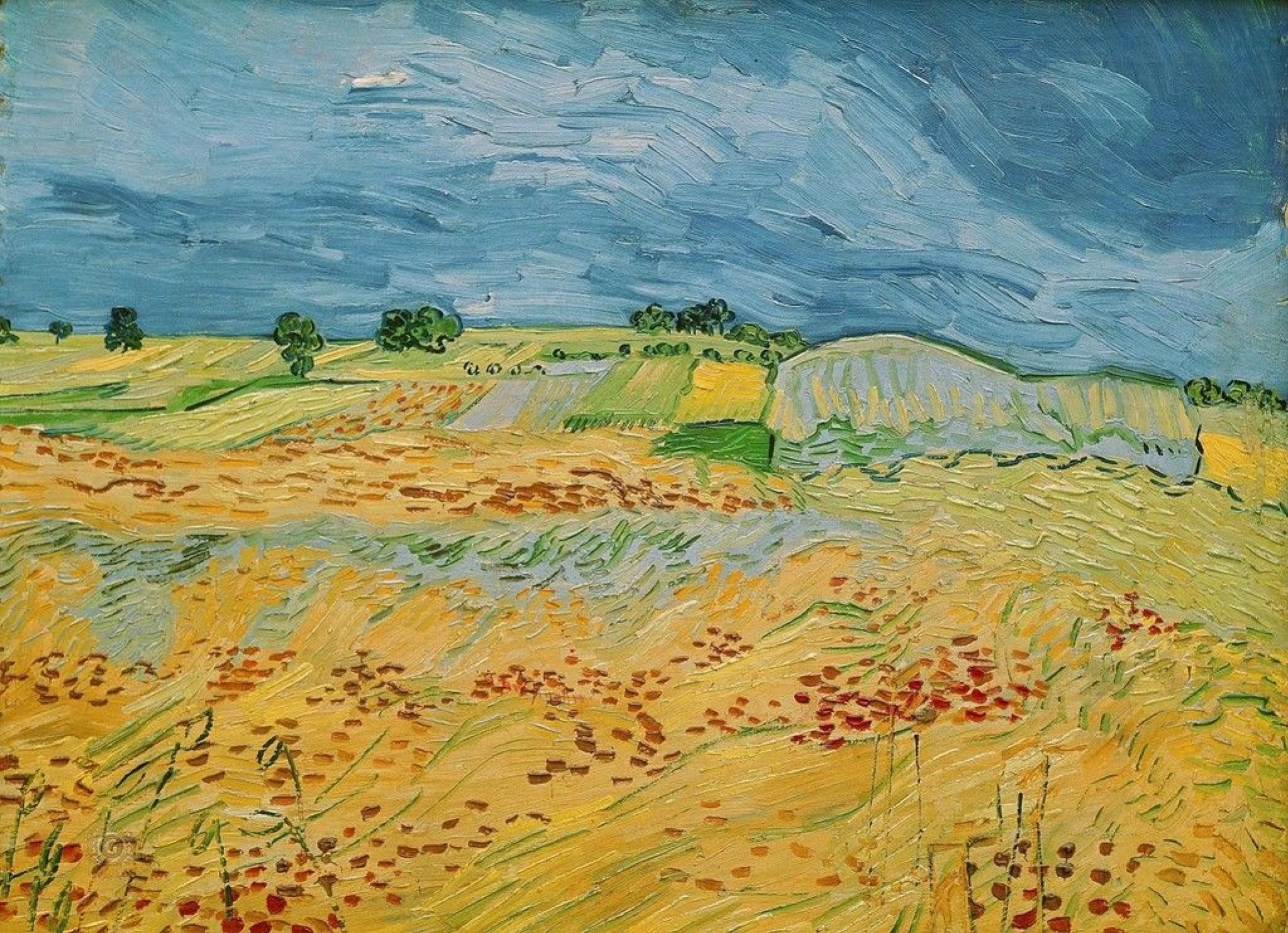 Ван Гог пшеничные поля в овере под облачным небом