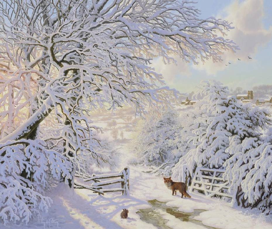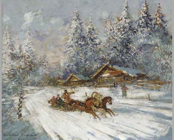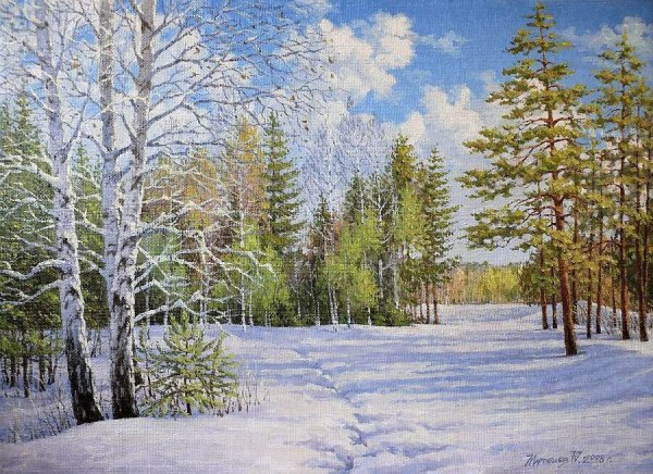 Художник Дмитрий Левин "зимний деревенский пейзаж ".