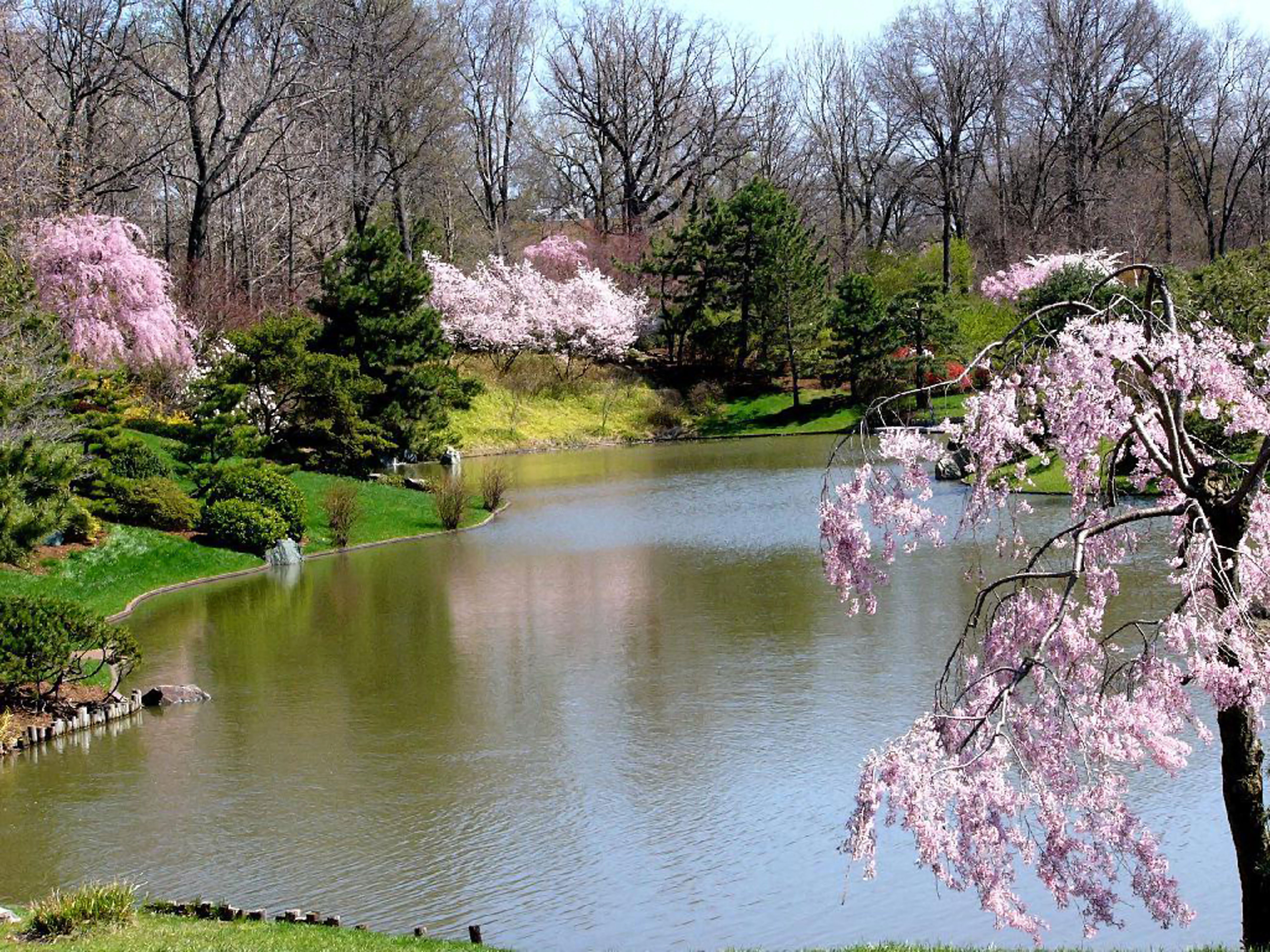Цветущий парк с водоемами