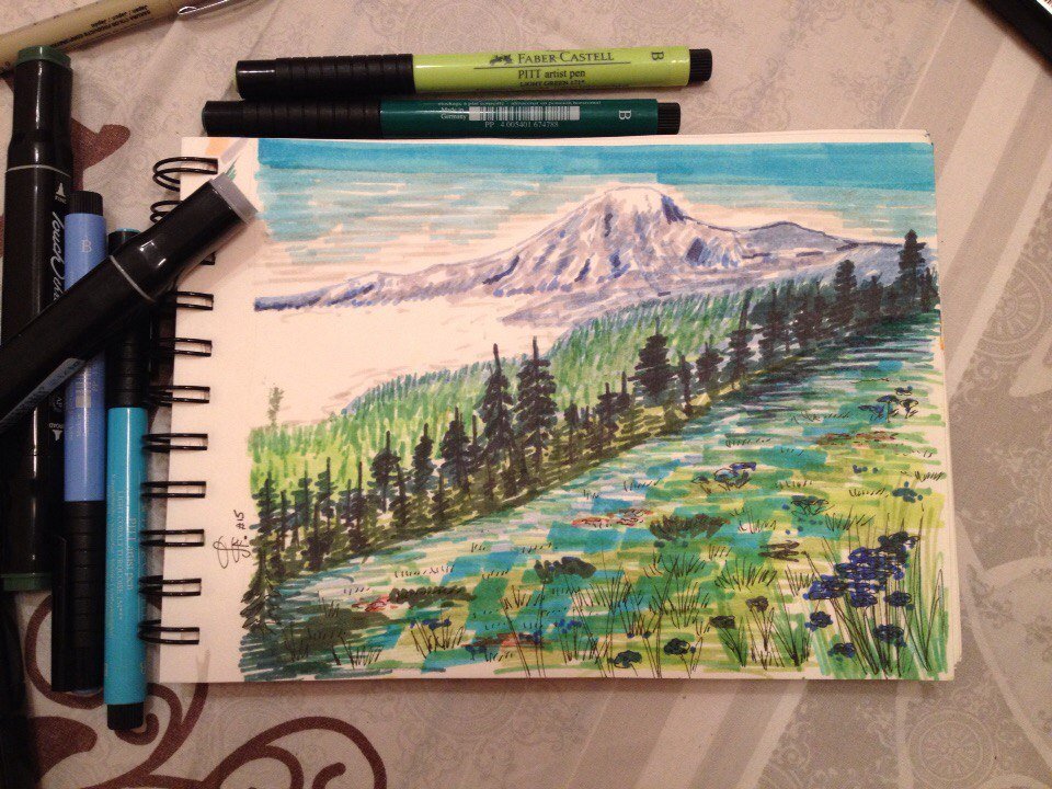 Горы скетч маркерами