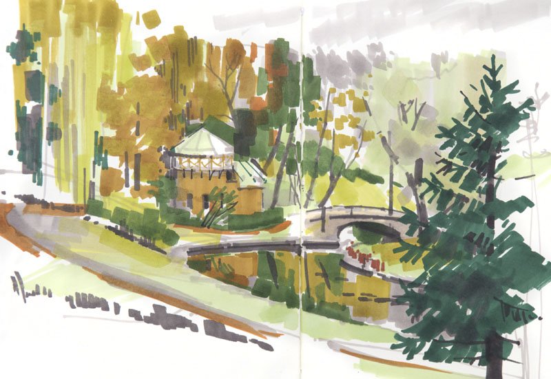 Ландшафтный скетчинг маркерами