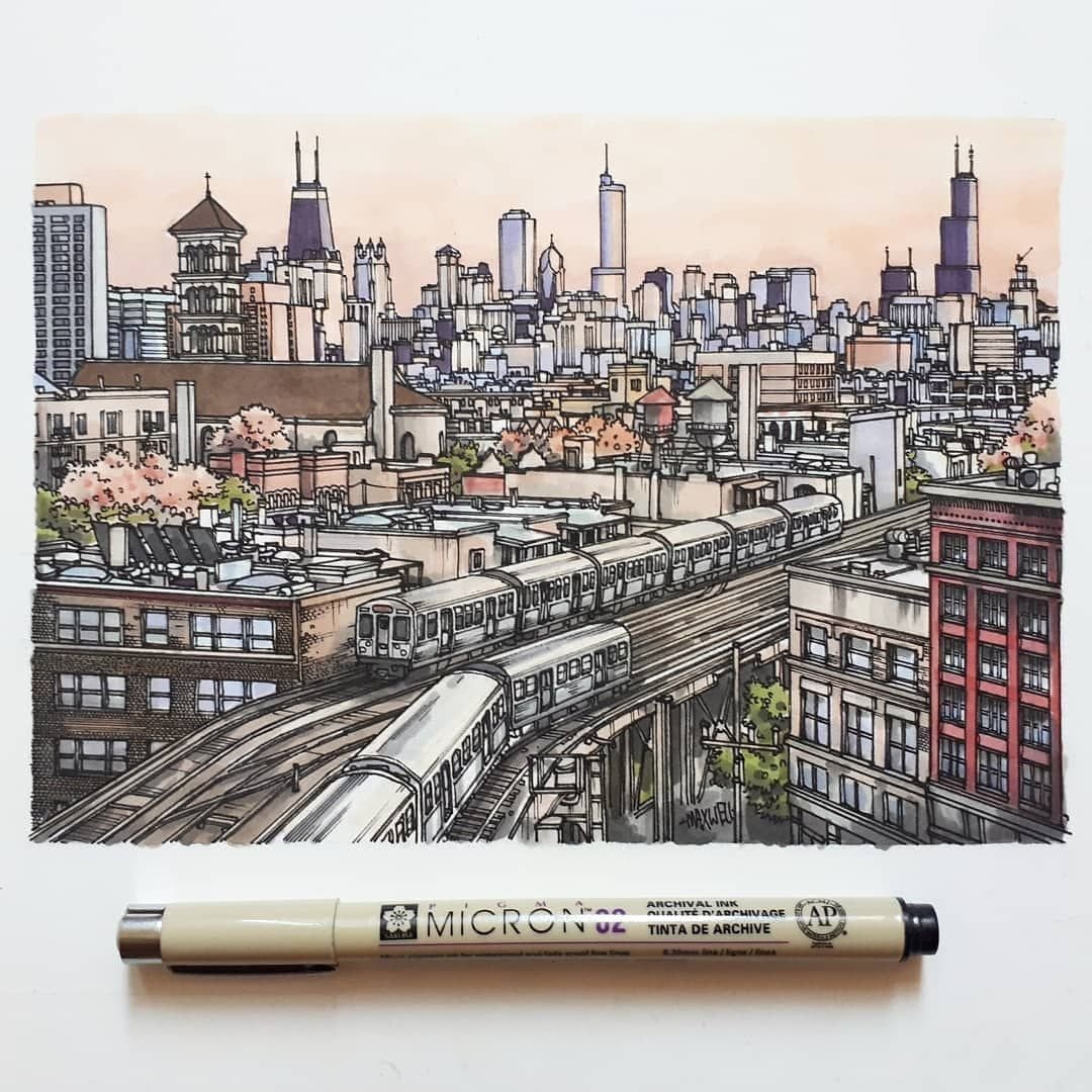Урбан скетчинг акварель