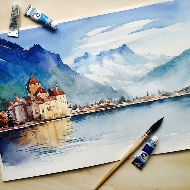 Зарисовки пейзажа акварелью