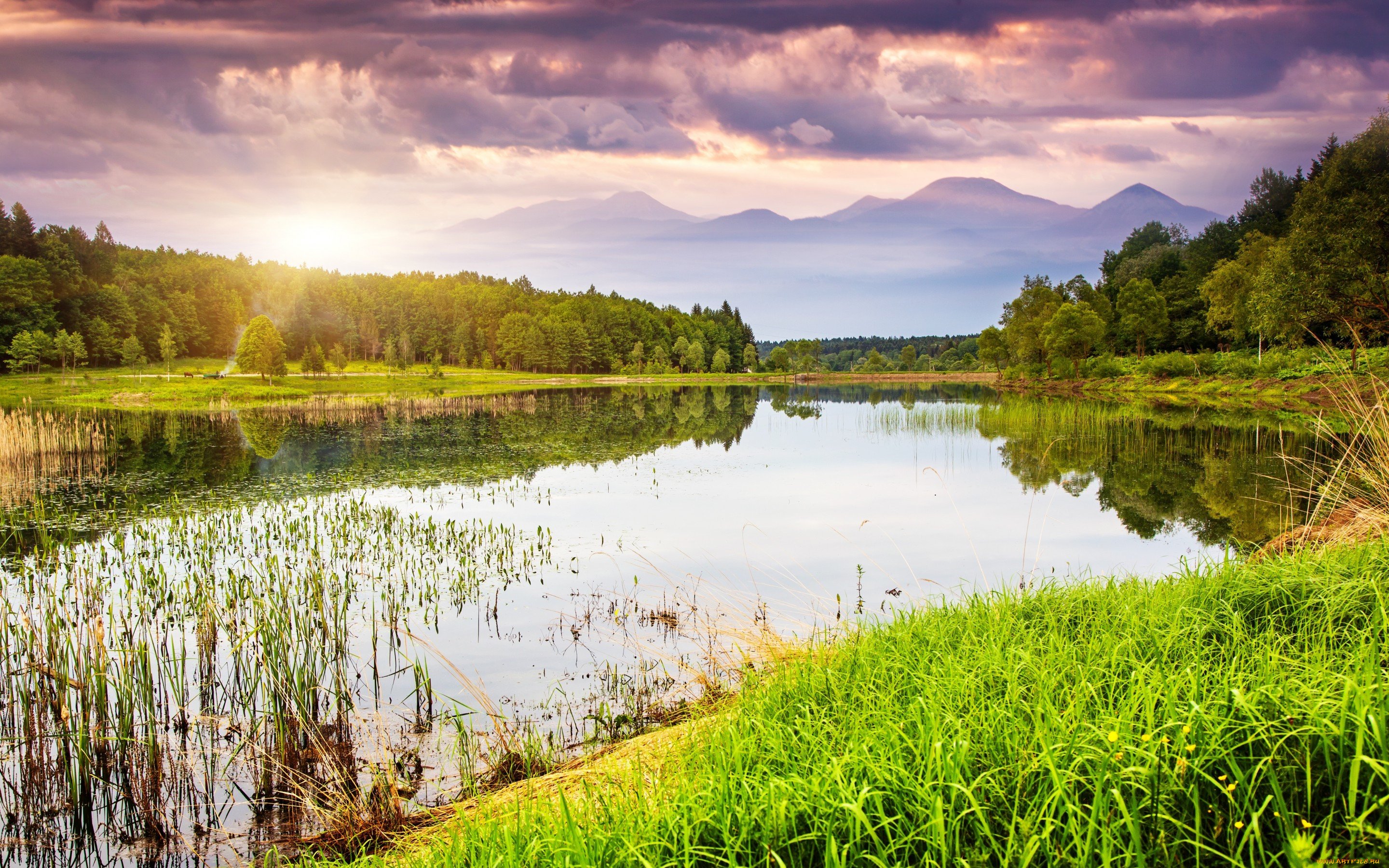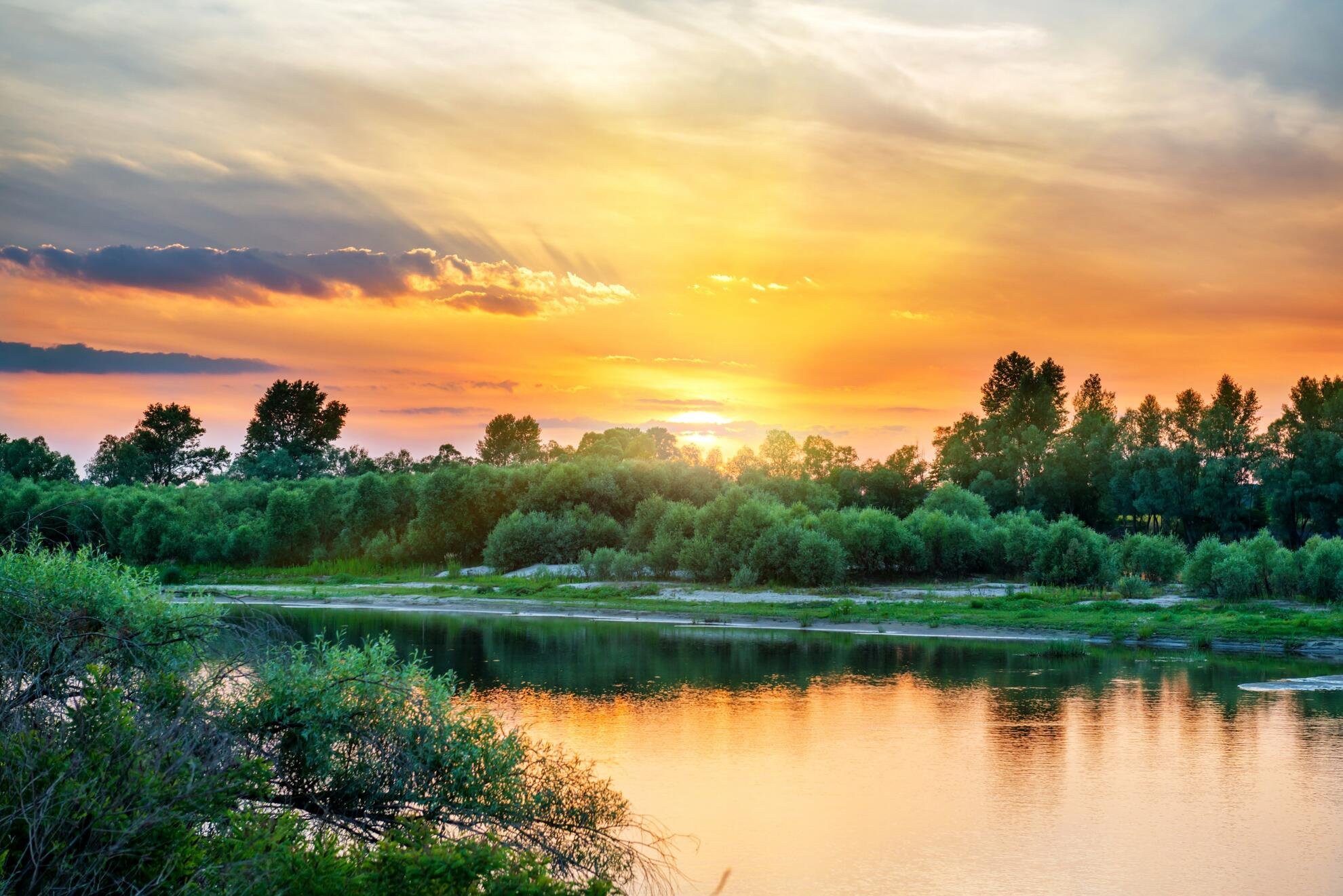 Лес река солнце