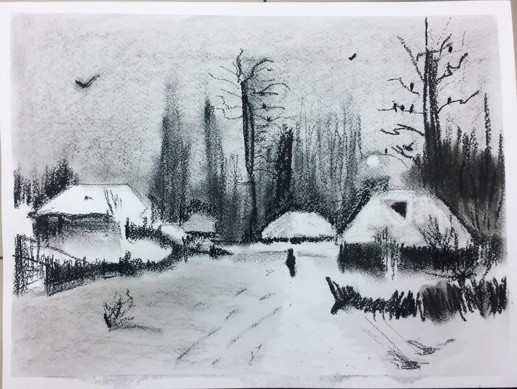 Зимний пейзаж выполненный карандашом - это неповторимое произведение искусства, которое захватывает душу своей изящностью и эмоциональной глубиной. В каждой мазке карандаша улавливается хрупкость снежных холмов, легкая пушистость падающих снежинок и игра света на замерзшем озере. Тонкие линии и тени придают реалистичность и объемность каждому элементу пейзажа, а мастерство автора передает атмосферу тишины и спокойствия зимнего утра или вечера. Независимо от того, насколько холодно за окном, зимний пейзаж карандашом переносит нас в мир сказочной и прекрасной зимы.