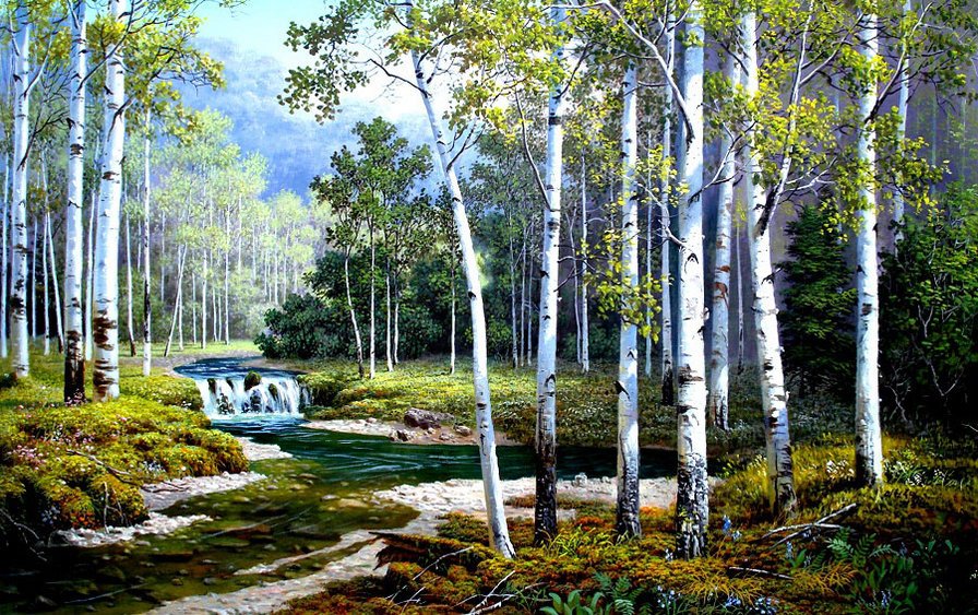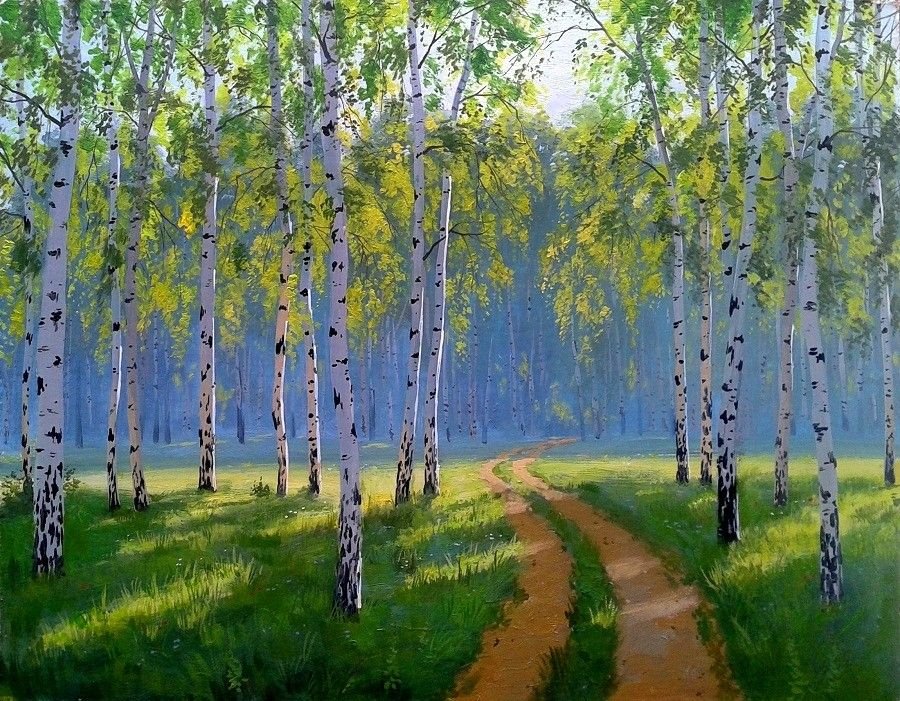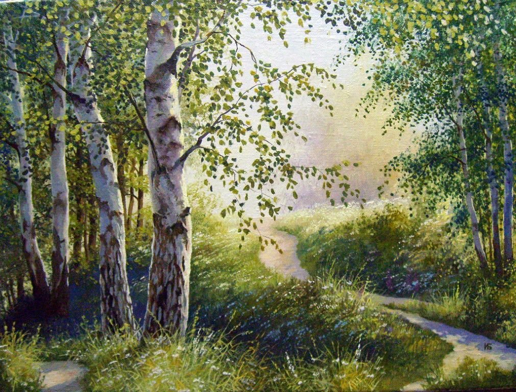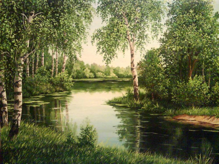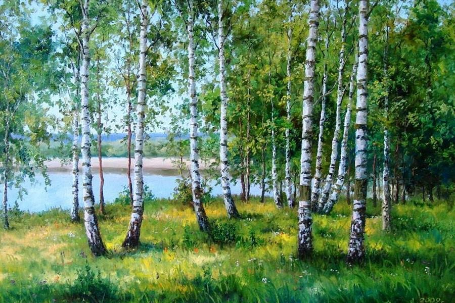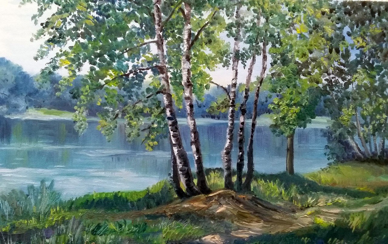 Живопись , Орлов Владимир, пейзаж - река,берёзы