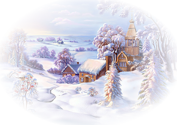 Новогодние пейзажи на прозрачном фоне