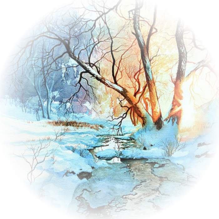 Зимнее дерево акварелью