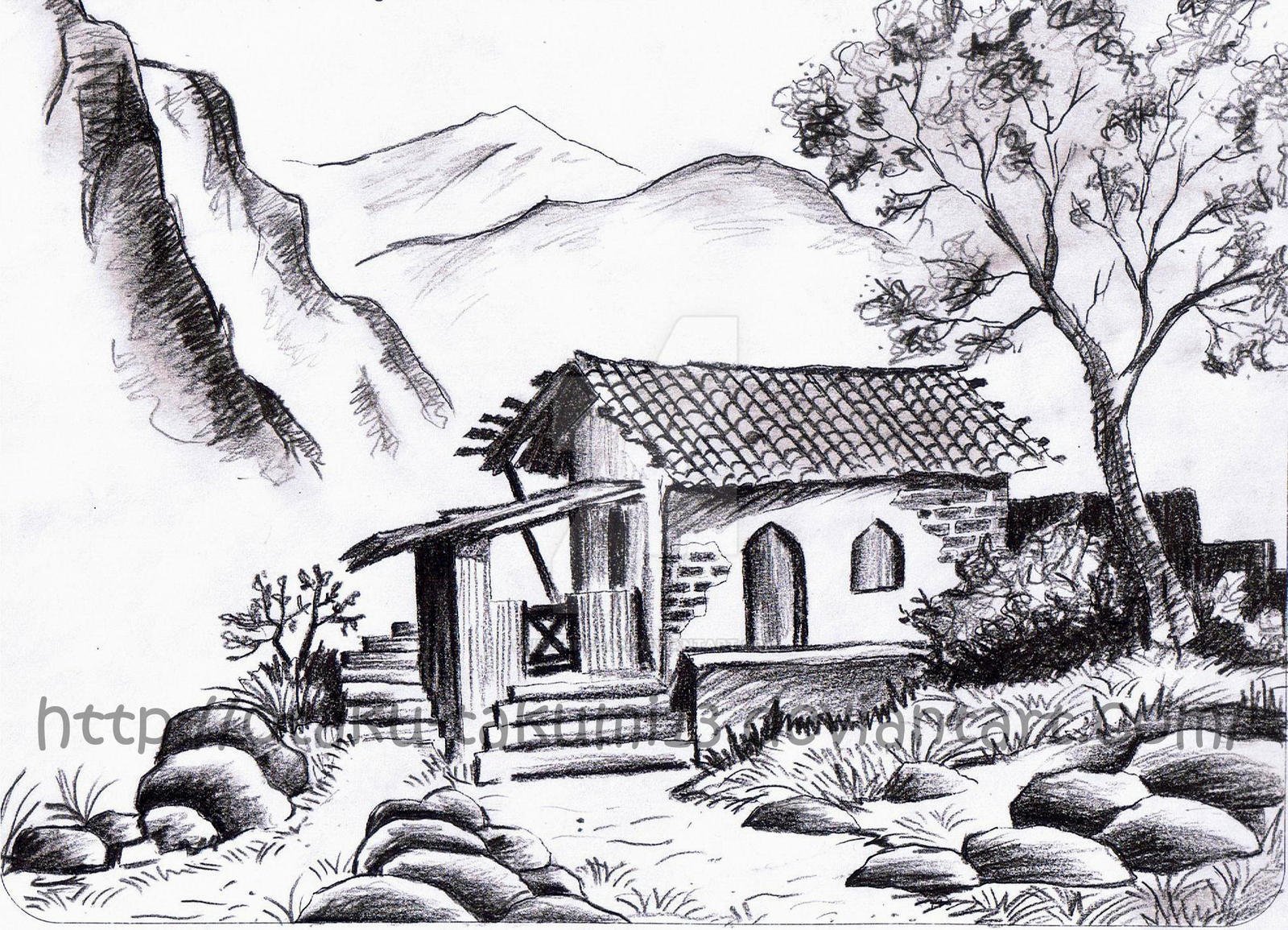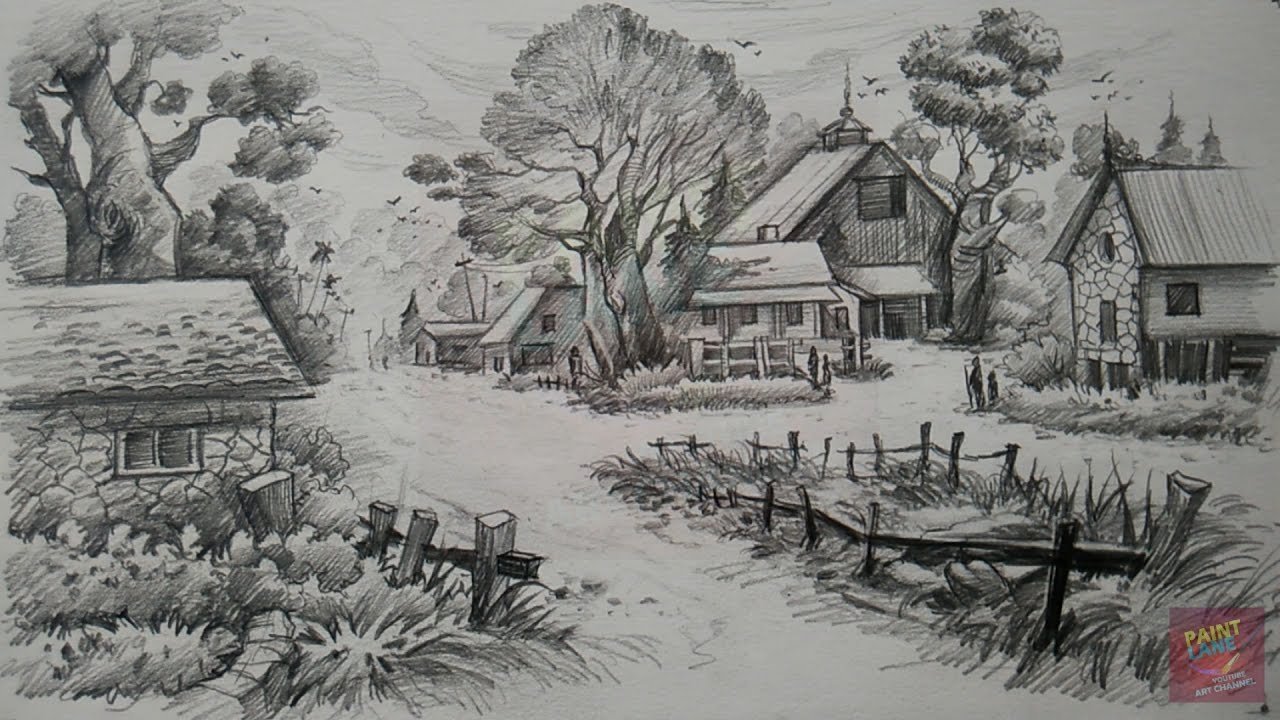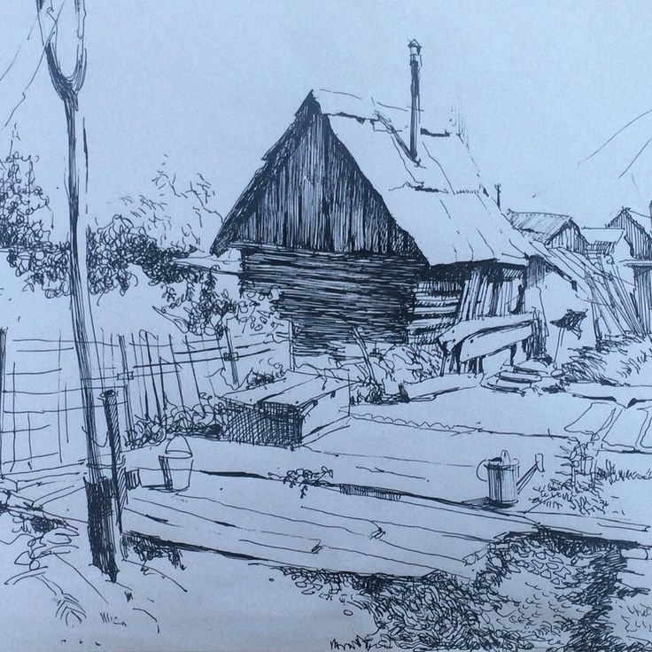 Деревенский пейзаж карандашом для начинающих