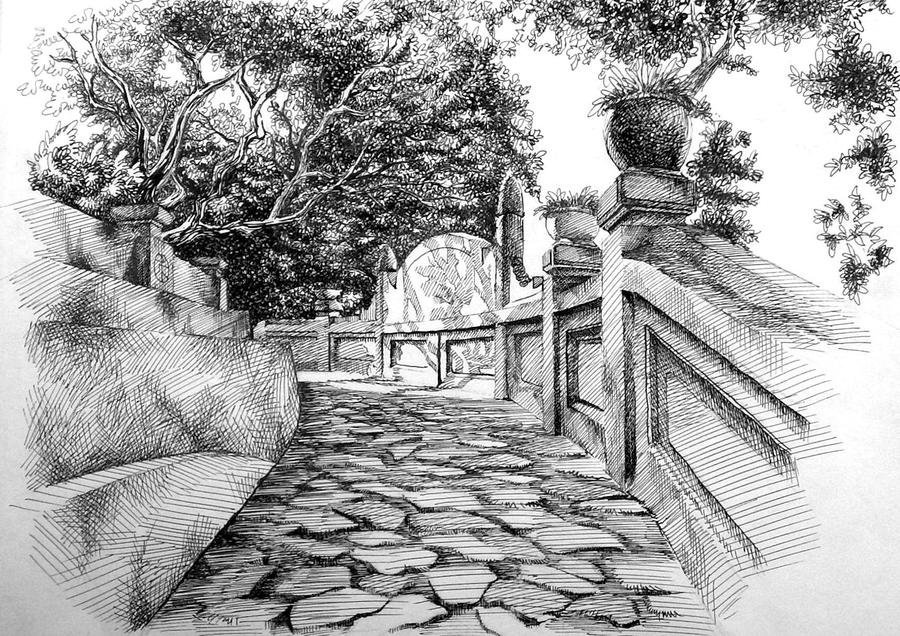 Архитектурный пейзаж карандашом