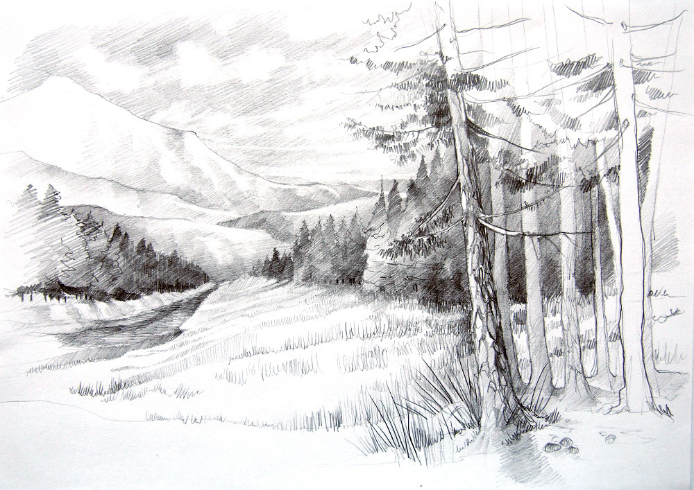 Рисование пейзажа карандашом
