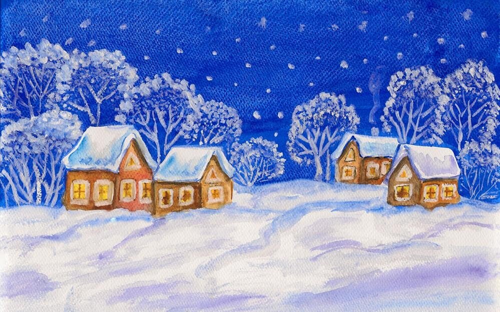 Рисование зимы красками