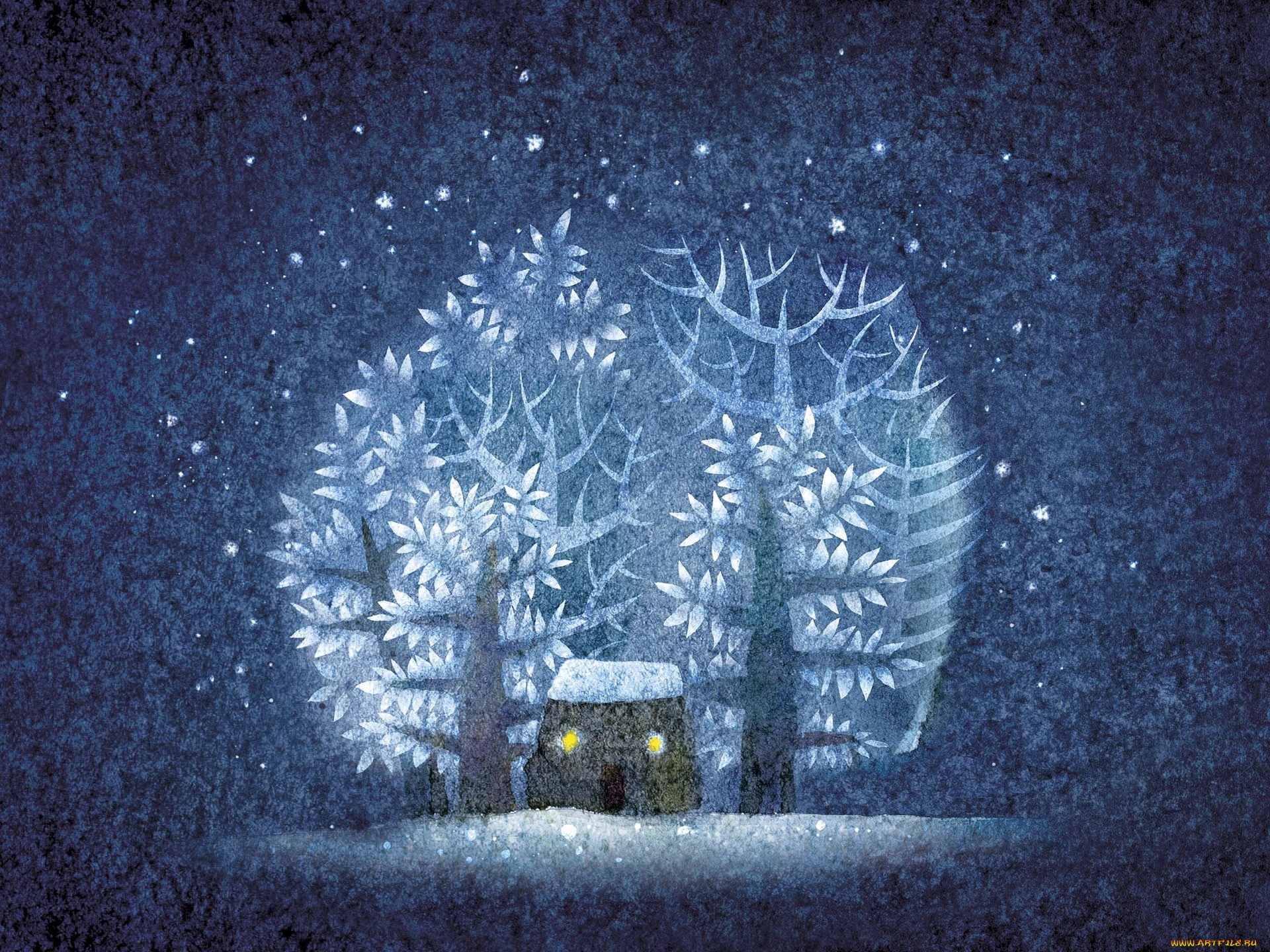 Рисование зимы на синем фоне