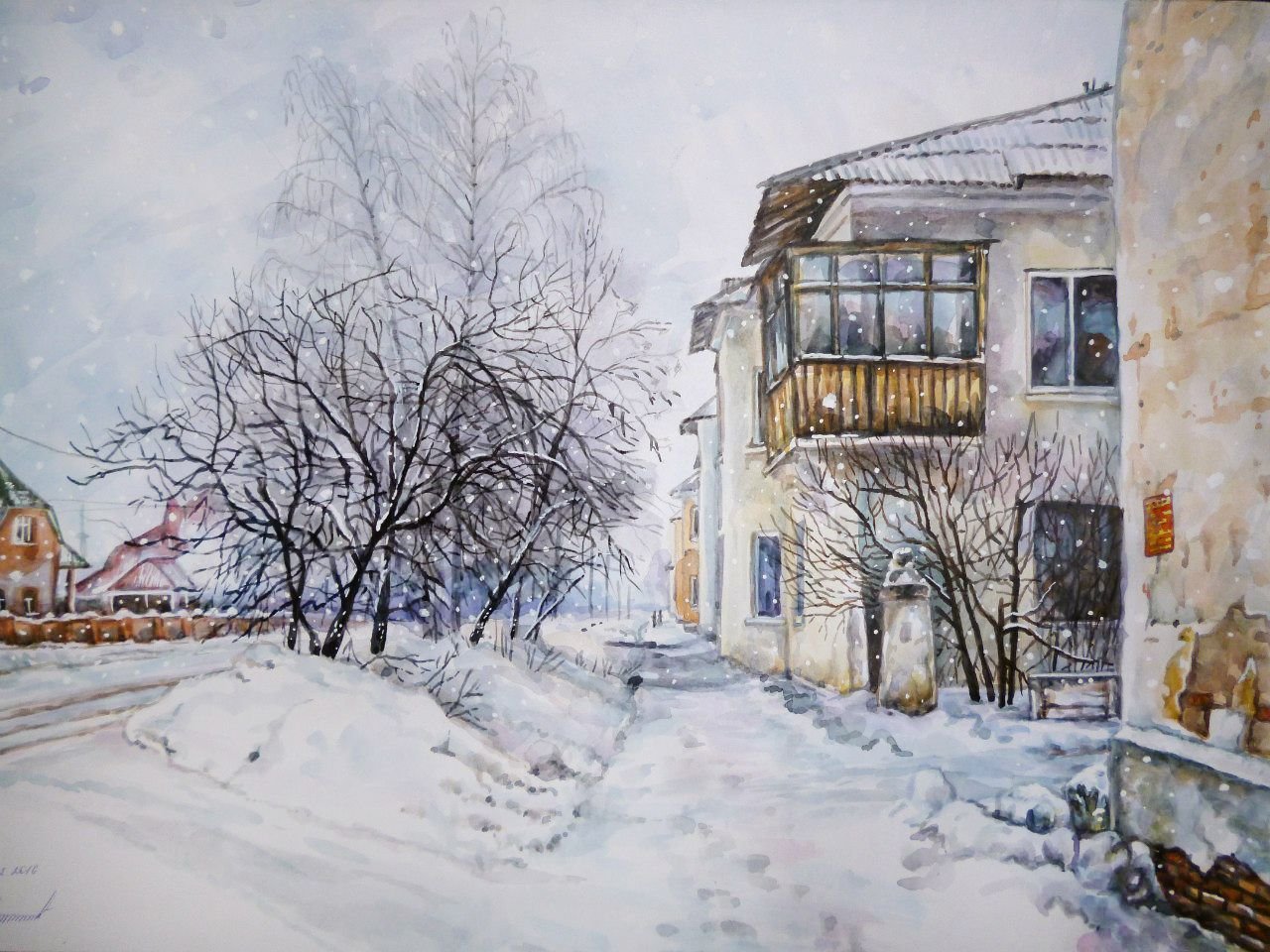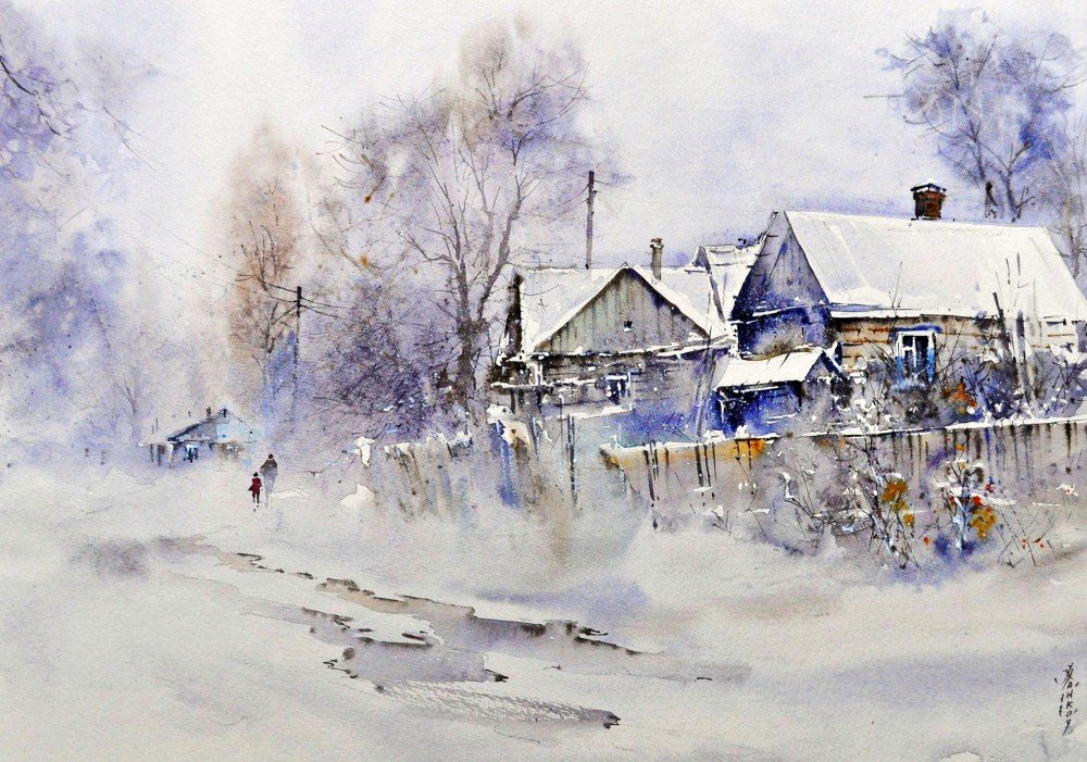 Курбатов Сергей акварель зимний пейзаж