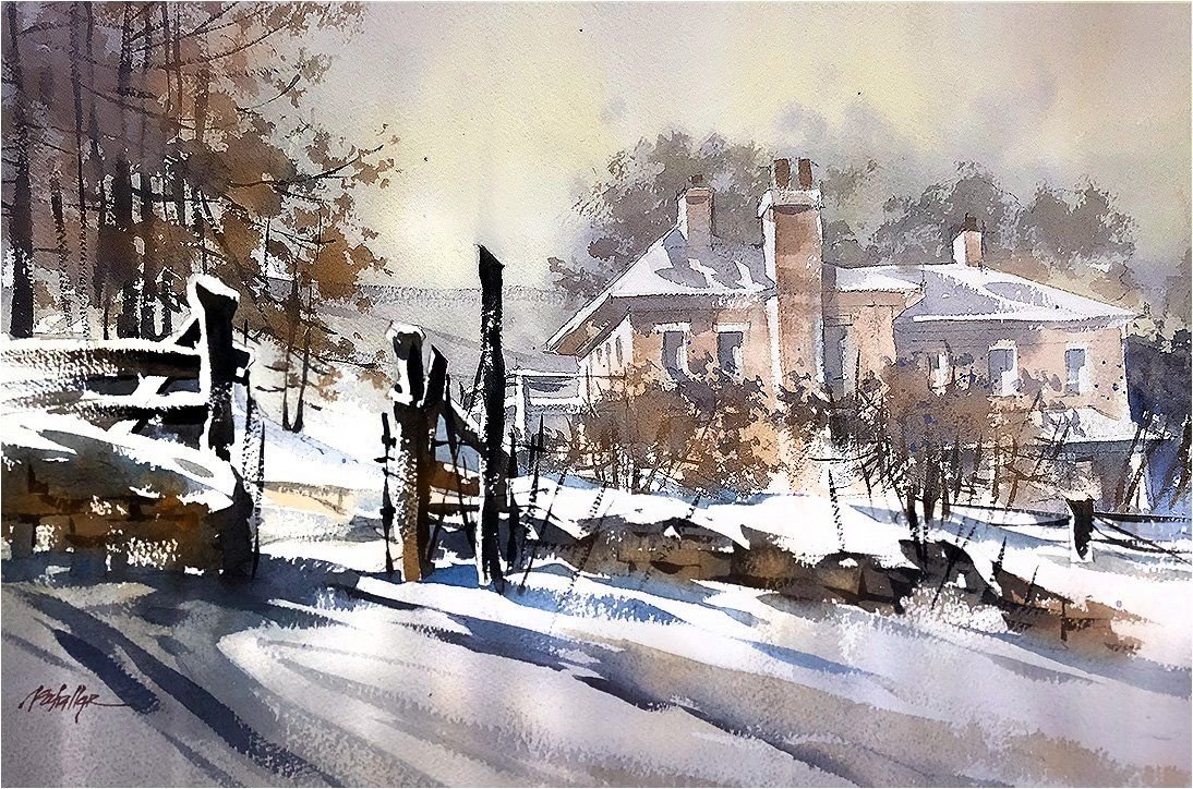 Художник Томас Шаллер акварель зима пейзажи