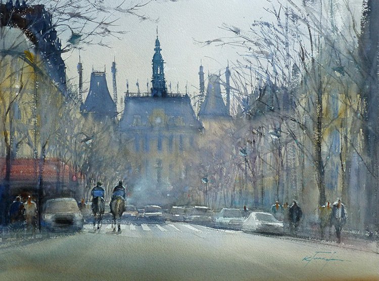 Акварель городской пейзаж Константин Кузема