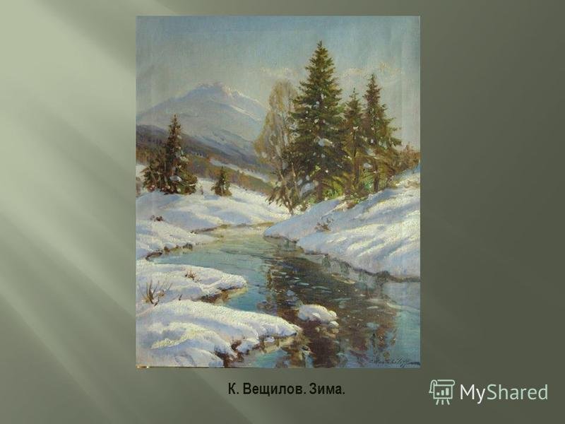 Вещилов к а зимний пейзаж с елями описание картины