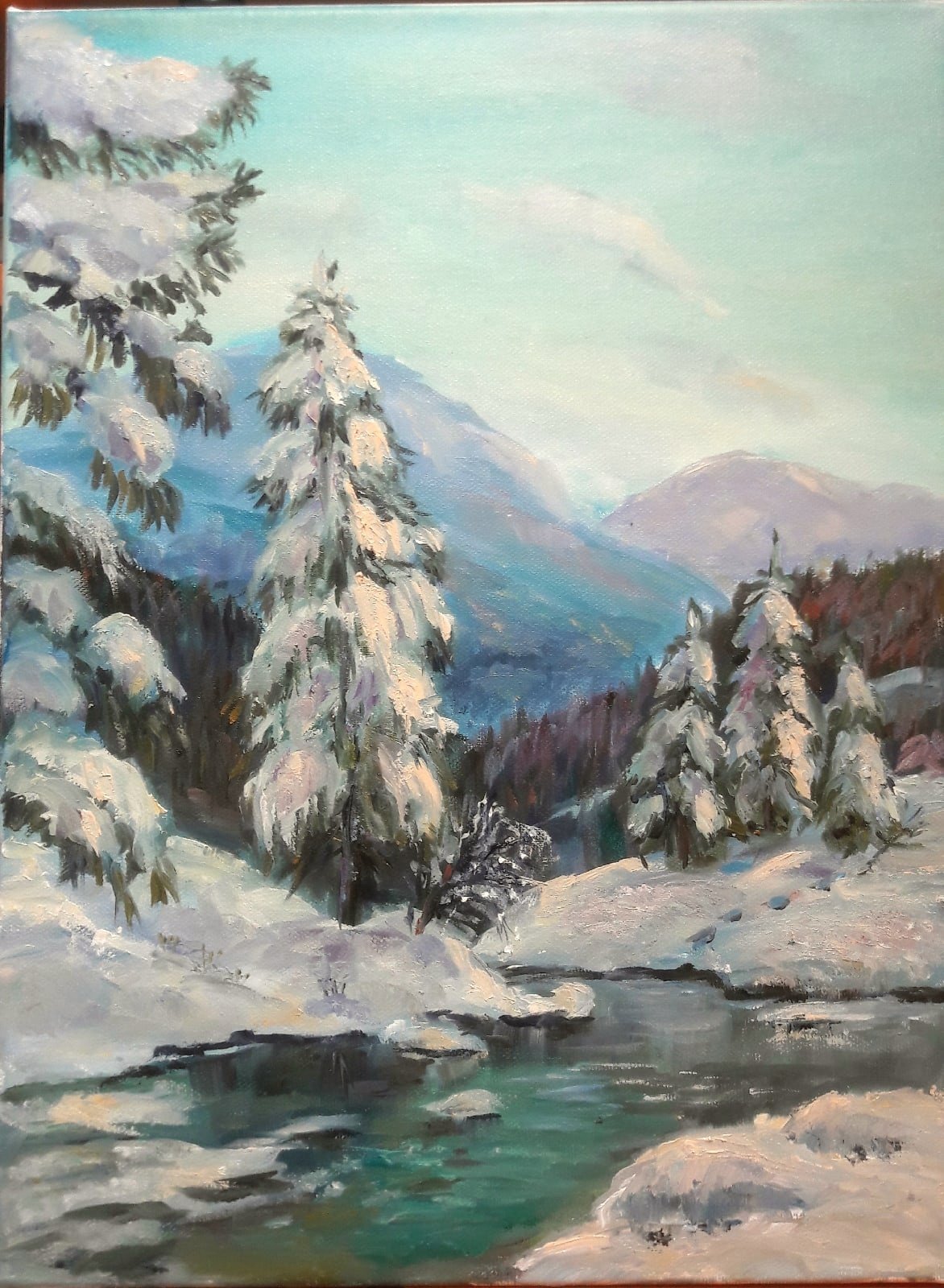 Зимний пейзаж маслом Евгения Антонова