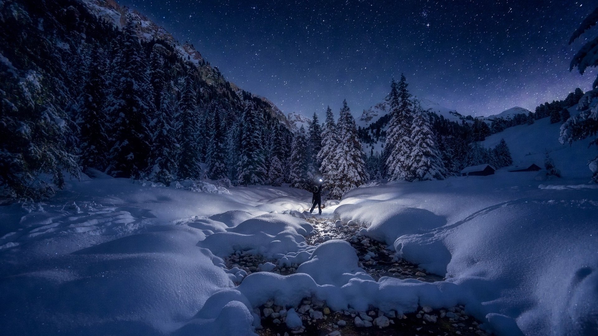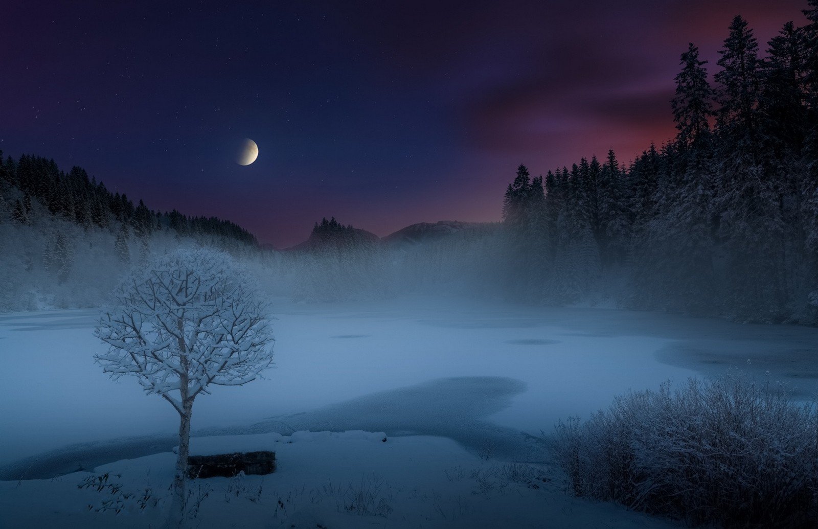 Зимняя ночь, покрытая пеленой белоснежного снега, раскрывает свою магию в этом прекрасном ночном пейзаже. Тихий и спокойный вид передает атмосферу полной гармонии и загадочности. Звездное небо ярко светит, словно алмазы разбросаны по черному одеянию ночи. Огни далеких домов создают теплое и уютное настроение, приглашая зрителя окунуться в сказочную атмосферу зимнего вечера. Холодный воздух скользит по лицу, оставляя ощущение свежести и чистоты. Это идеальная картинка для тех, кто хочет испытать волшебство зимней ночи и насладиться ее красотой.