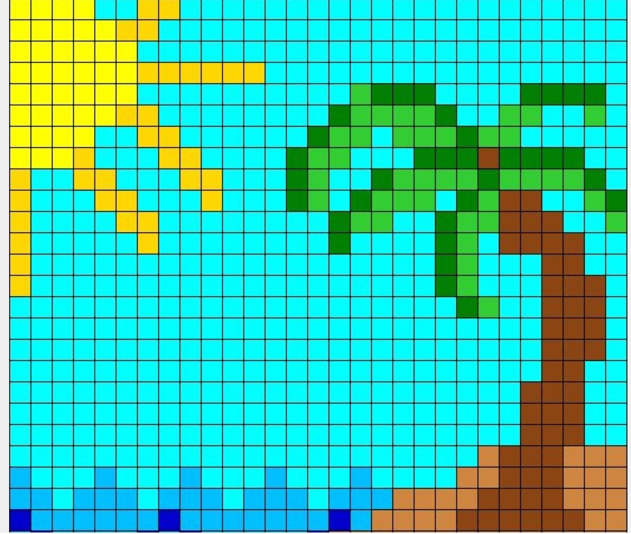 Рисование по клеточкам пейзаж