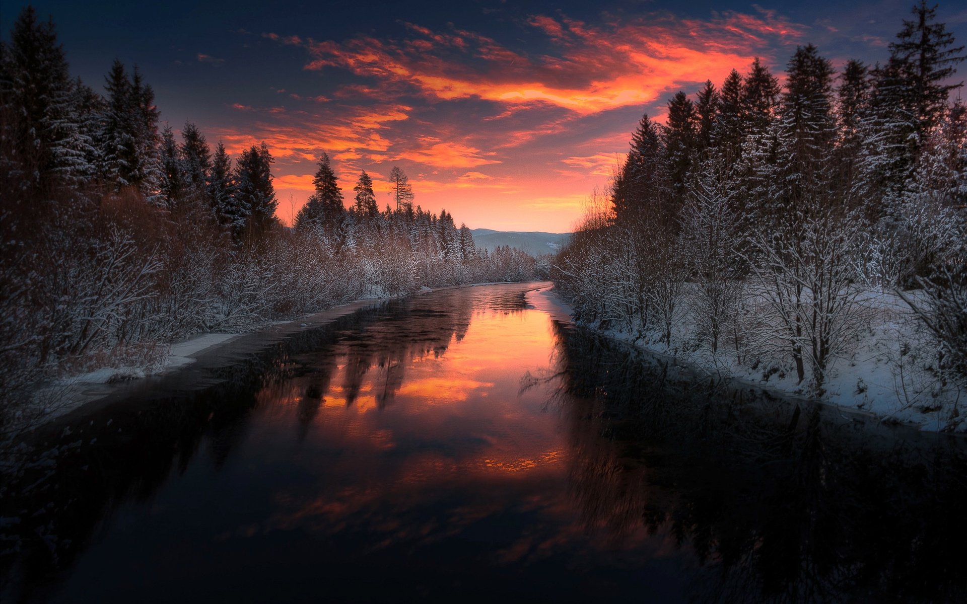 Ночное зимнее небо река