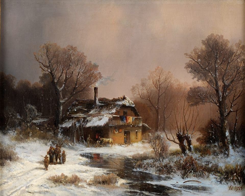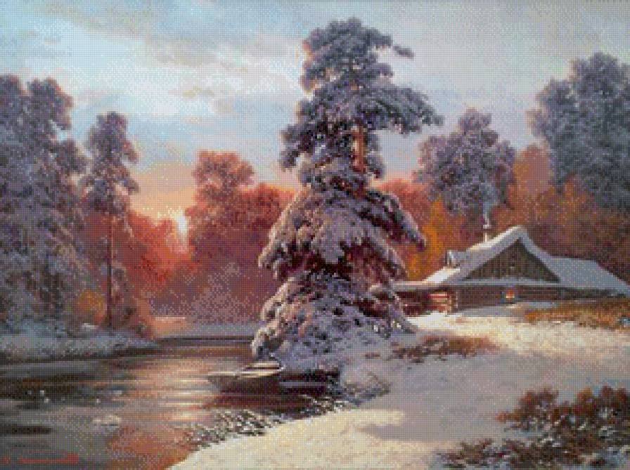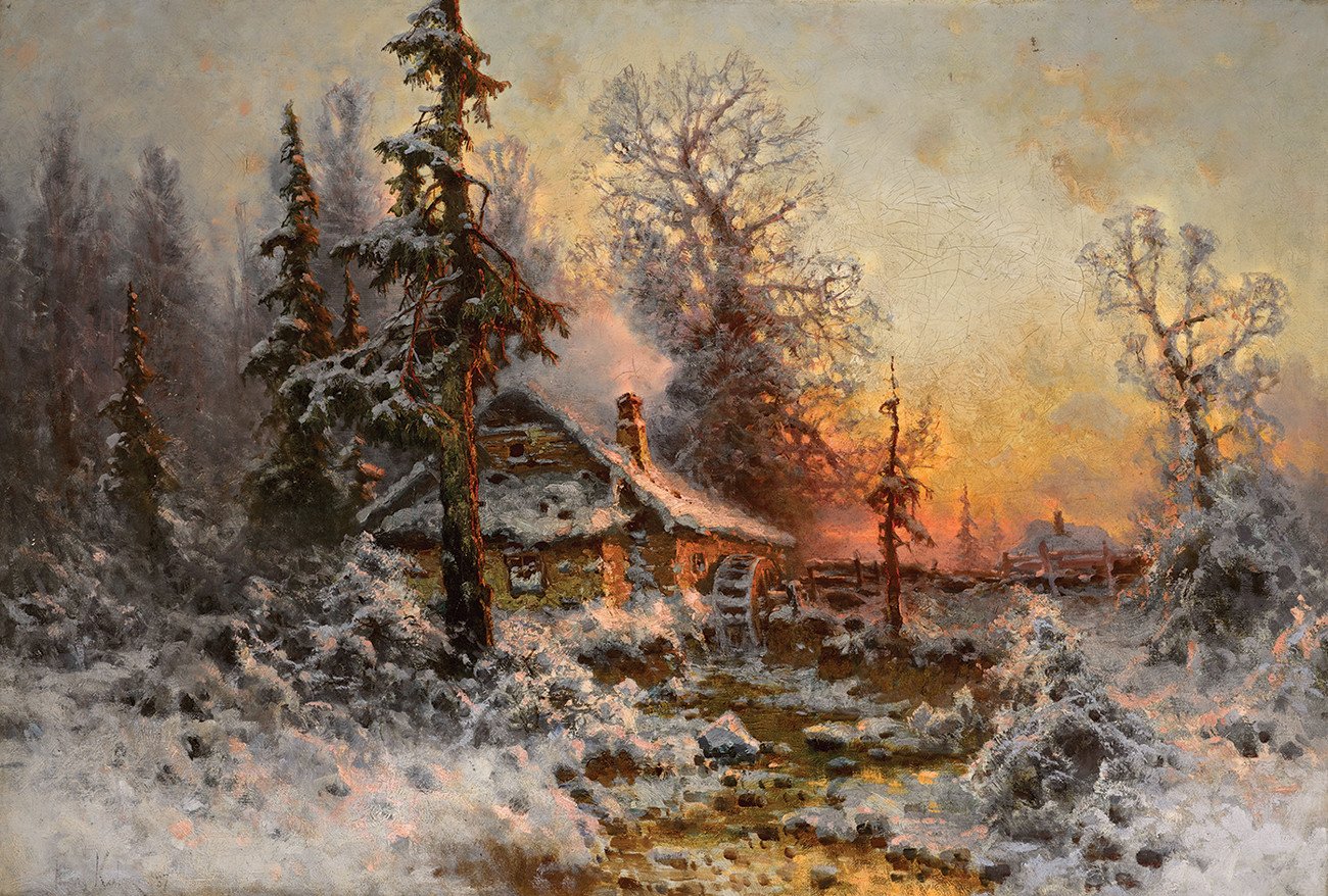 Ю. Клевер «зимний пейзаж с избушкой» 1899