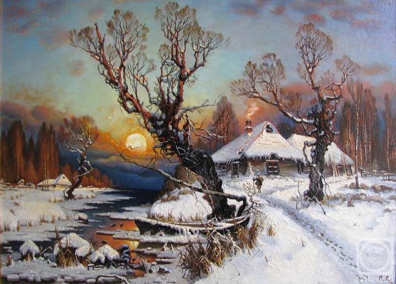 Юлий Юльевич Клевер картины "зимний вечер. Деревушка" 1897