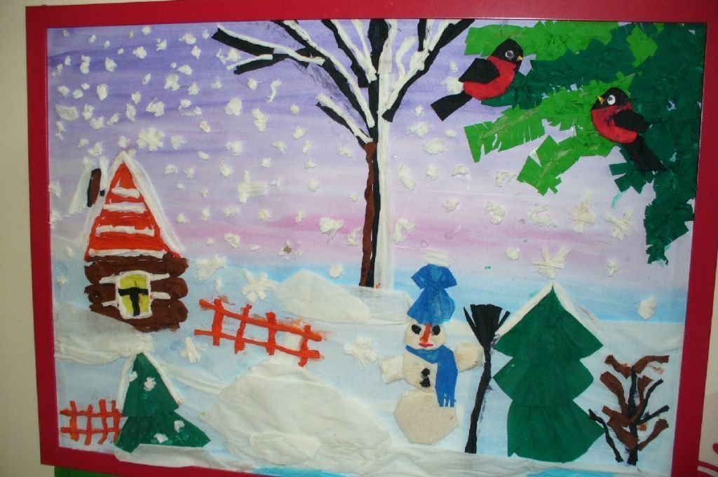 Рисунки детей на тему зима в детском саду