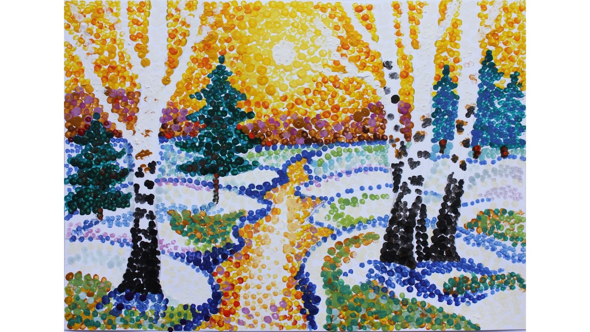 Рисование в технике пуантилизм зима