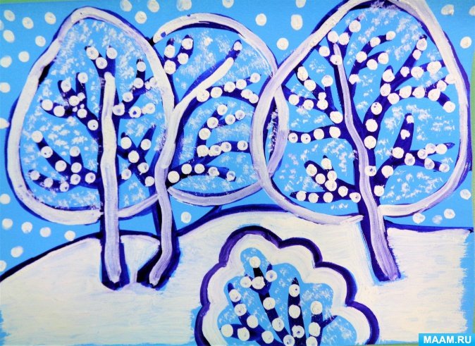 Необычная техника рисования для детей зима