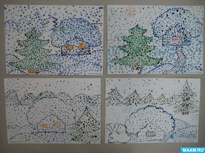 Пуантилизм подготовительная группа зима