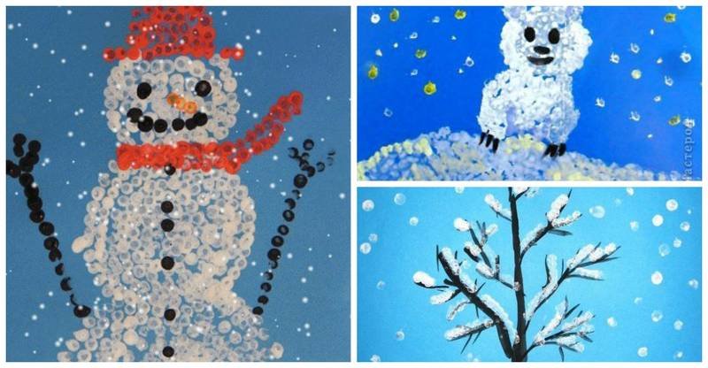 Рисование ватными палочками для детей зима