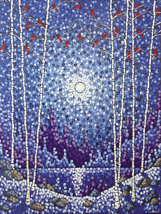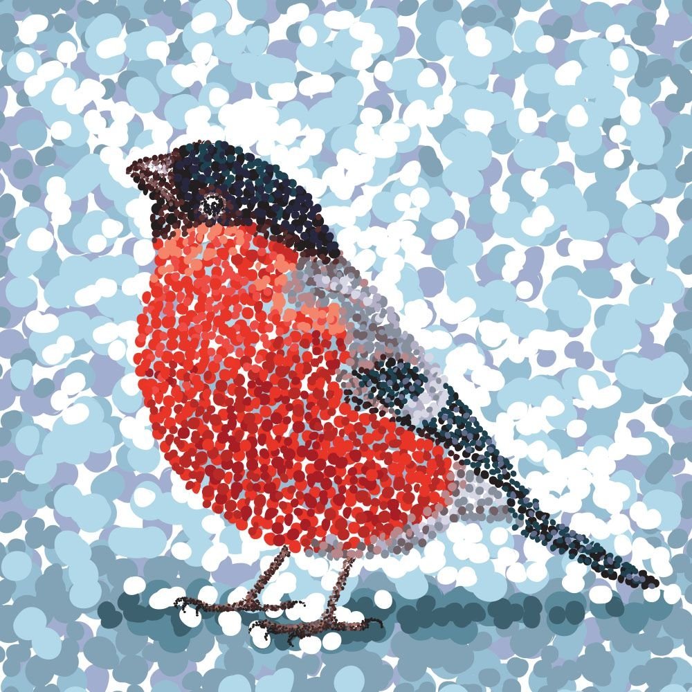 Точечная живопись пуантилизм зима
