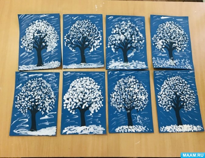 Рисование ватными палочками в подготовительной группе зима