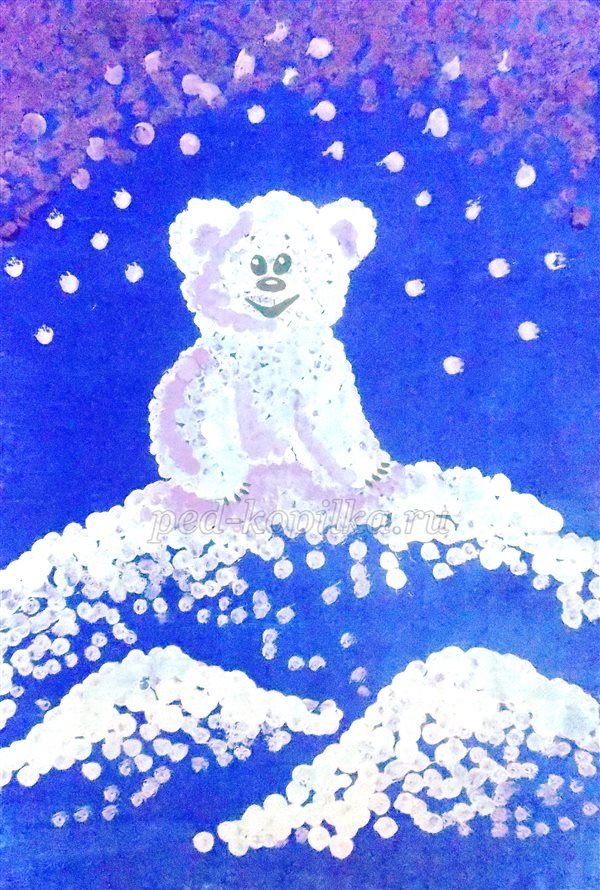 Белый медведь ватными палочками рисование