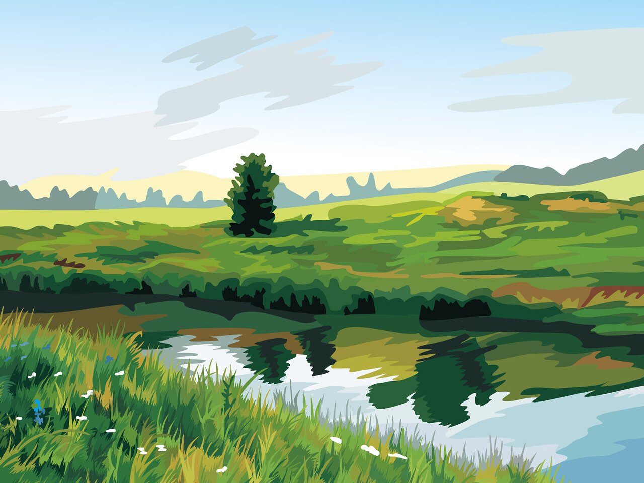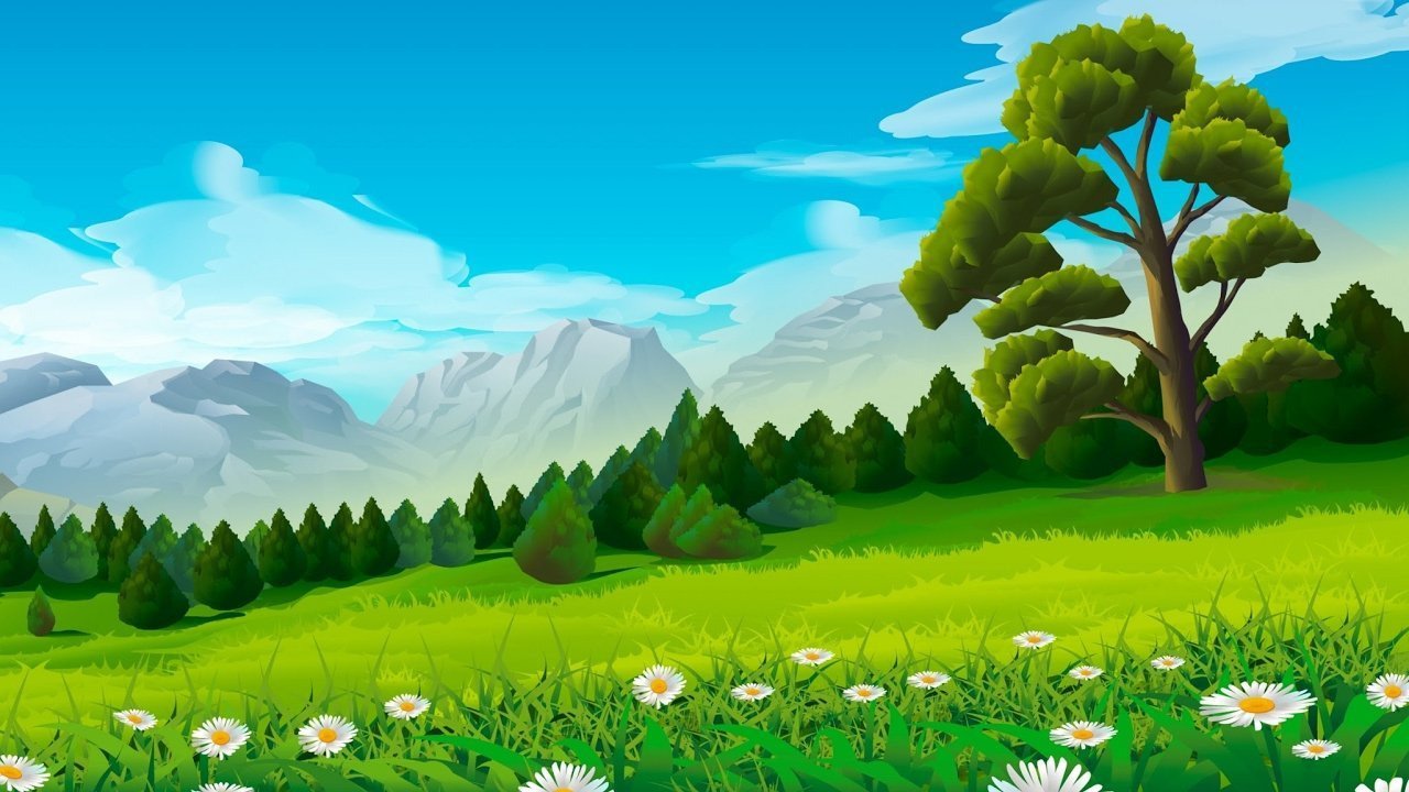 Пейзаж мультяшный - это прекрасное сочетание ярких и насыщенных цветов, живых форм и необычных композиций, которые создают атмосферу игры и веселья. Здесь встречаются сказочные горы со снежными вершинами, пушистые облака в форме сердечек, зеленые луга с улыбающимися цветами и дружелюбными животными. В таком пейзаже всё кажется возможным: можешь поплавать в реке из розового лимонада, найти укрытие в домике на дереве или просто полюбоваться фейерверком из конфети. Пейзажи мультяшного стиля великолепно передают радость и волшебство, делая их идеальной основой для детских игр, ярких открыток или дизайна детской комнаты. Они будут радовать глаза и вызывать улыбку на лице каждого, кто оказывается в мире мультяшных пейзажей.